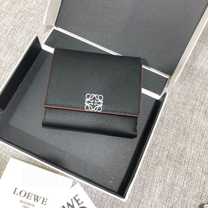 【정품급】【시퀀스 코드 포함】 로에베 반지갑 자갈무늬 소가죽, 속가죽, 카드홀더, 지퍼포켓으로 지폐확대 가능 사이즈 11x10cm