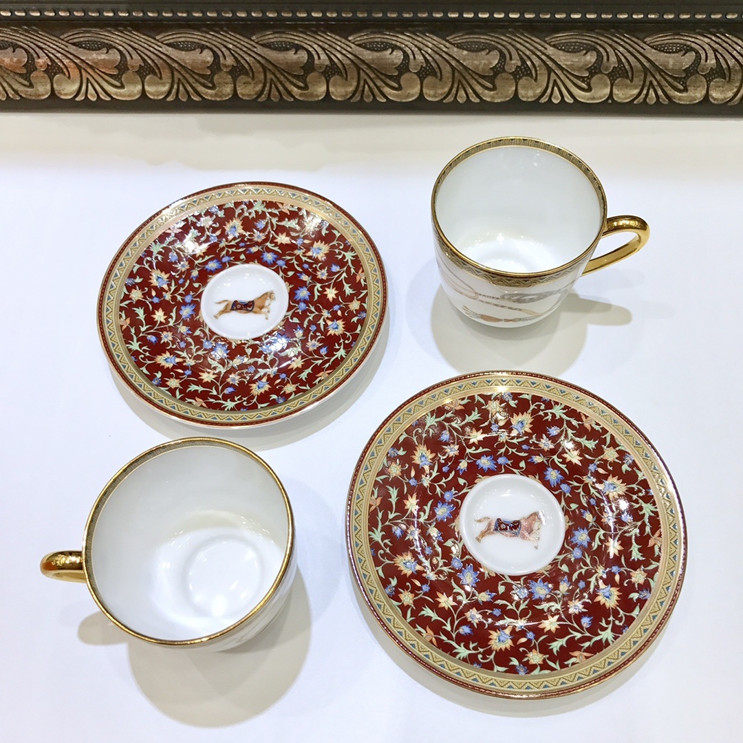에르메스 2017-2018 《밀라노 국제 가구쇼》 전시품 "Chavel d'Orient" 시리즈 미니커피 대잔 순수 핸드메이드 엠보싱 공법으로 손으로 만지면 요철감을 느낄 수 있으며 패턴을 더욱 생생하게 색깔이 선명하게 45% 골자기 함량 제품이 더욱 돋보이게 한다 100%독일수입24k골드 멀티핸드그래픽 골드 만들기 럭셔리하게 연출하기