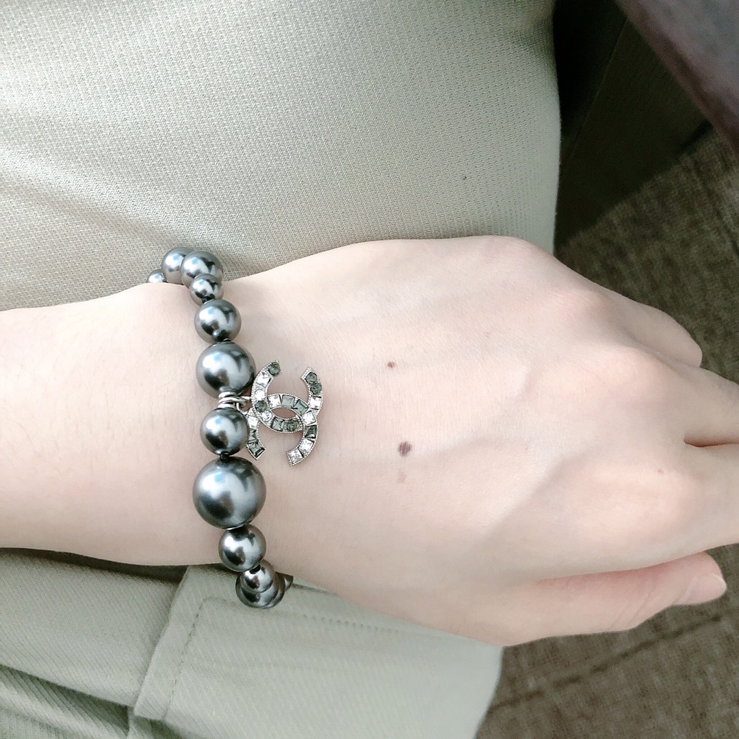 Chxnel 더블C 그레이펄 팔찌 현물 ZP 3950 일치ZP 황동소재 스와로크리스탈 특별맞춤입니다. 월로 진주입니다. 진주색은 고급 그레이 컬러로 매우 부드럽습니다. 매우 고급스러운 팔찌로 신선함이 넘치는 팔찌입니다