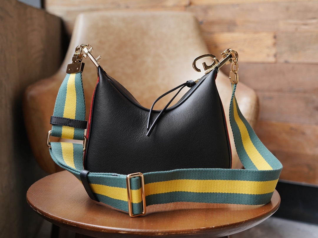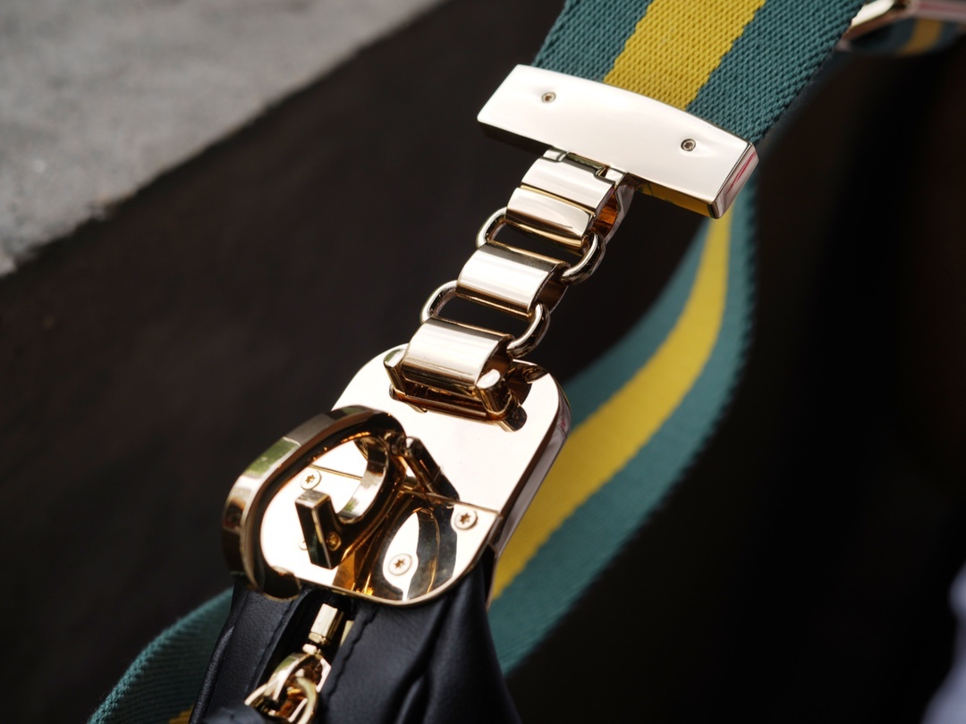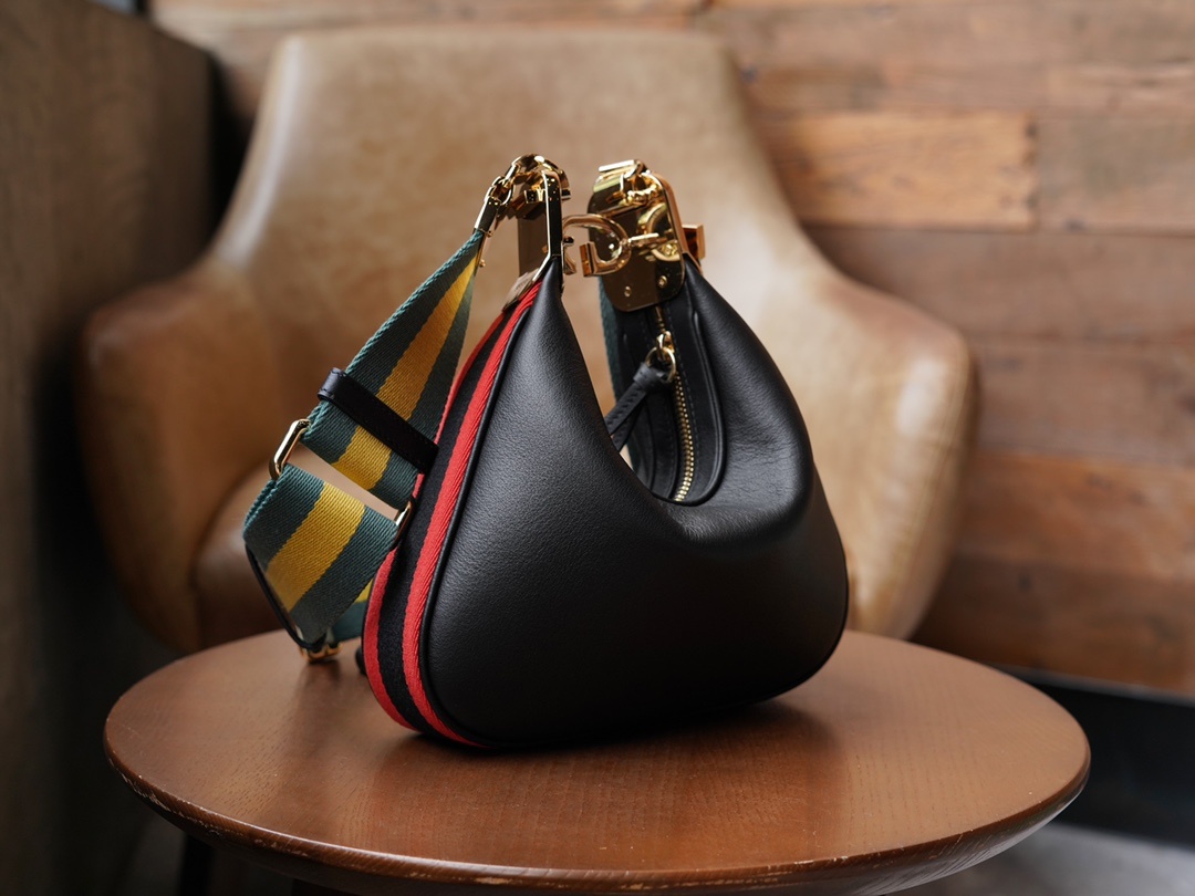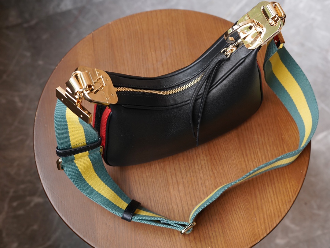 스몰 숄더백 모델번호 699409 이 액세서리는 시인성 있는 초승달 스타일로 G 버클이 유니크한 디자인 감각을 더해줍니다 클래식한 액세서리와 부드러운 소재의 조화가 세련되고 로맨틱한 기법으로 빈티지한 매력을 연출해 줍니다. 블랙 가죽으로 제작된 스몰 사이즈의 숄더백으로 오렌지 컬러와 블랙 테잎 롤러를 매치하였습니다.