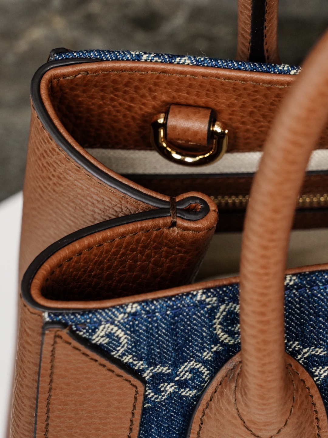 미드 사이즈 데님 토트백입니다. 모델번호 649016 Jackie 1961 시리즈에서 새로운 멤버를 맞이합니다 토트백으로 사랑받는 타닌 원단을 미적으로 표현하여 클래식한 GG 패턴으로 표현하였습니다 브랜드 로고가 녹아있는 원단과 핸드백의 시그니처 푸시버튼 액세서리를 절묘하게 매치한 아이템입니다.
