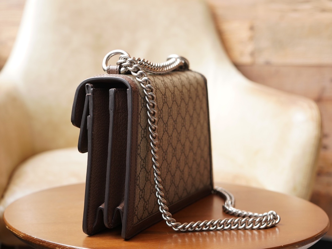 모델번호 621512 디오니수스(Dionysus) 라인의 숄더백 클래식한 GG 슈프림 캔버스 소재와 브라운 가죽 롤업 그리스 와인 신 디오니소스에서 영감을 받은 시그니처 호두 디테일로 브랜드 인지도가 높은 스타일리쉬한 룩을 연출해 주는 토트백입니다 기존의 체인 숄더 스트랩에 심플한 원핸드 디자인이 어우러져 더욱 생동감 있고 매끄러운 스타일링을 선사하며 더욱 풍부한 휴대 옵션을 제공합니다.