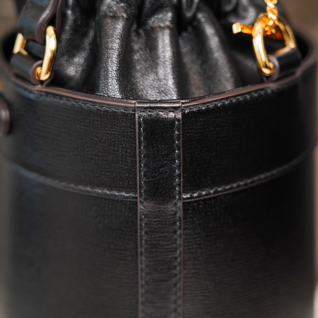 모델번호 637115 1955 시리즈 물통 가방 화이트입니다 GG 슈프림 캔버스 소재에 화이트 가죽과 탈부착식 스트링 버클이 조화를 이루며 새로운 원형 버킷백으로 라인에 생기를 불어넣습니다. G가의 고전적 계승 상징으로서 이중 고리와 긴 막대 요소로 구성된 홀더 패턴은 승마에서 영감을 받아 오늘날 눈부신 브랜드 아이코닉 요소가 되었습니다. 블랙 가죽을 사용하여 스타일리쉬한 룩을 연출해 줍니다.