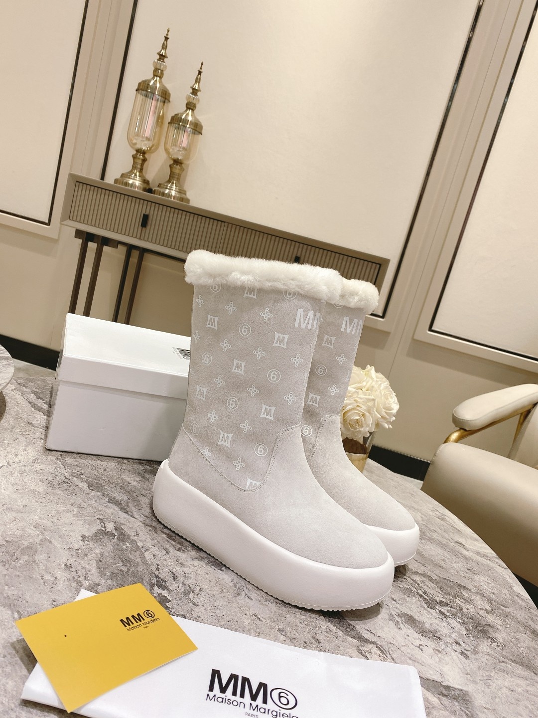 가을 겨울 신상 MM6 키높이 양털 미들부츠 스노우부츠 원단은 소가죽 안감 울을 사용하여 오리지널과 동일하게 정품을 매칭하였습니다. 5cm 통굽에 스페이스 소재를 사용하여 가볍고 발끝이 매우 편안하고 부드러우며 다리라인을 길게 잡아주어 키높이