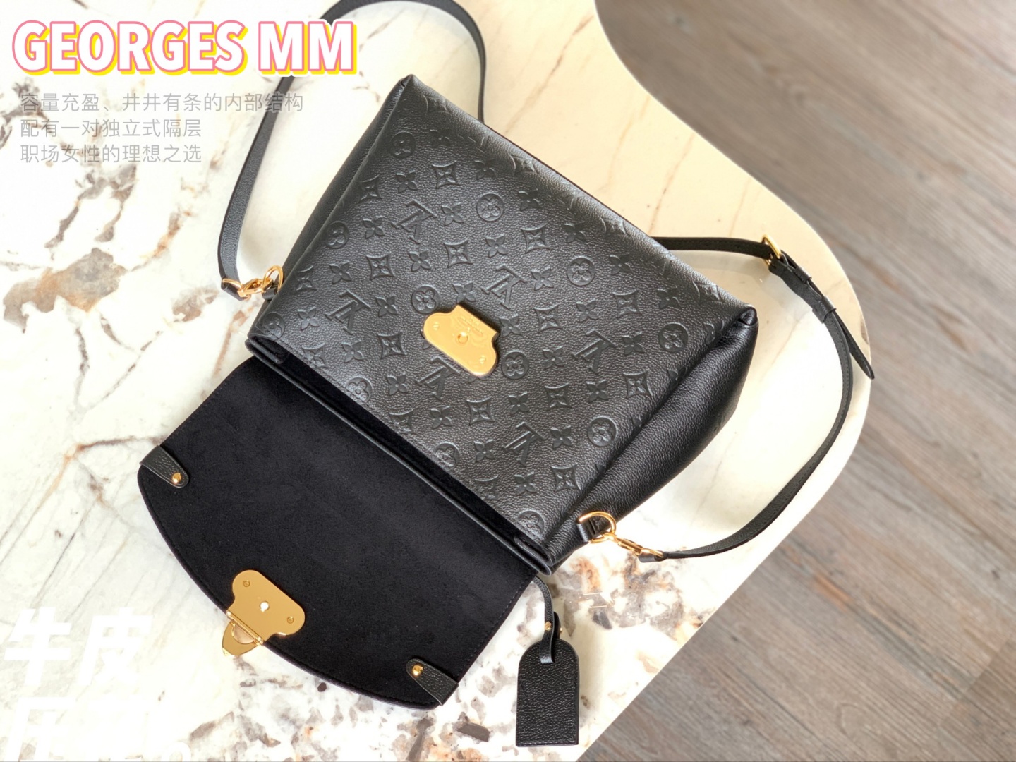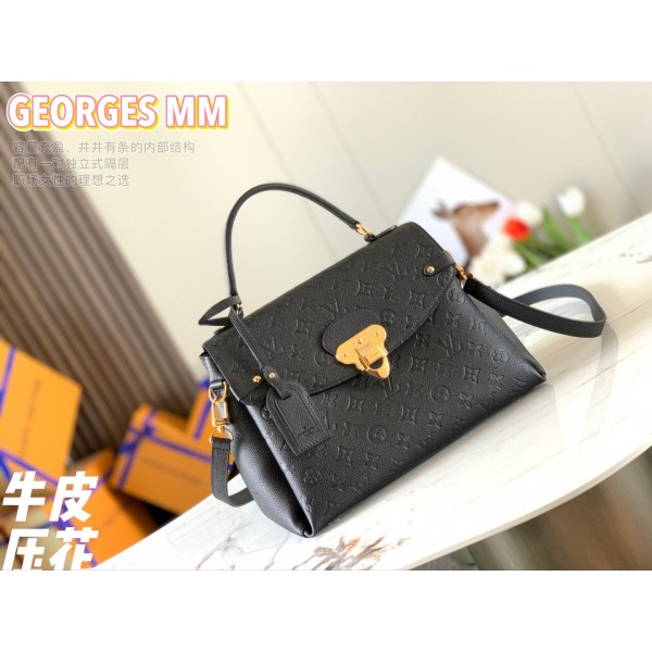 특급 부티크 오리지널 가죽 M53945 가죽 소재의 원터치 손잡이인 Georges BB의 클러치백으로 루이비통 클래식 하드케이스에서 유래한 디테일이 많이 들어간 시그니처 골드 잠금장식입니다.