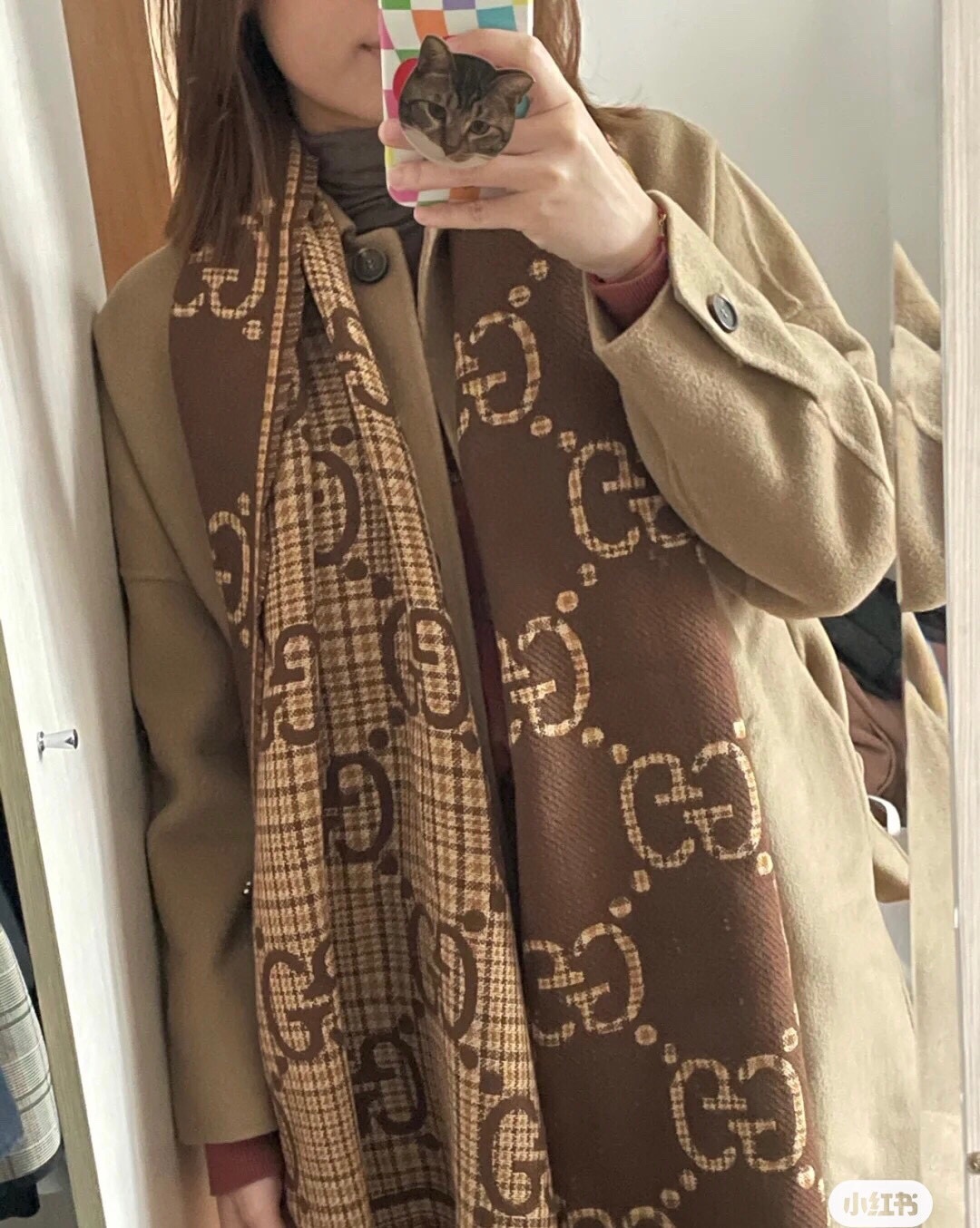 G가 스타일 레터링(매장품질) 겉감:울+실크 사이즈:47*180 울 실크 스카프로 장식 오버사이즈 디자인 GG 패턴입니다 GG패턴이 새로운 방식으로 패션에 복귀하여 트렌드로 돌아가는 체크 스타일입니다. 좀 더 유니크하고 스타일리쉬해요