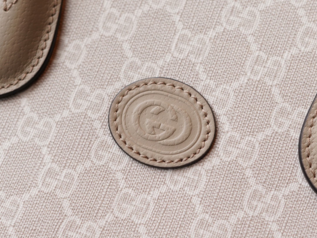 모델번호:659983 오트밀 라인의 스몰 토트백 GG 슈프림 캔버스로 제작된 힘있는 구조의 트럼펫 백으로 오트밀 컬러의 가죽 롤러를 매치하여 탑 핸들과 숄더 스트랩의 이중 휴대 옵션을 제공합니다. 클래식한 더블 G 레터링 캔버스 소재로 디자인 전반에 걸쳐 브랜드 아이덴티티를 물씬 풍깁니다. 사이즈 : 31*26.5*14cm
