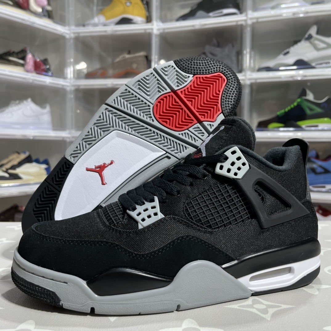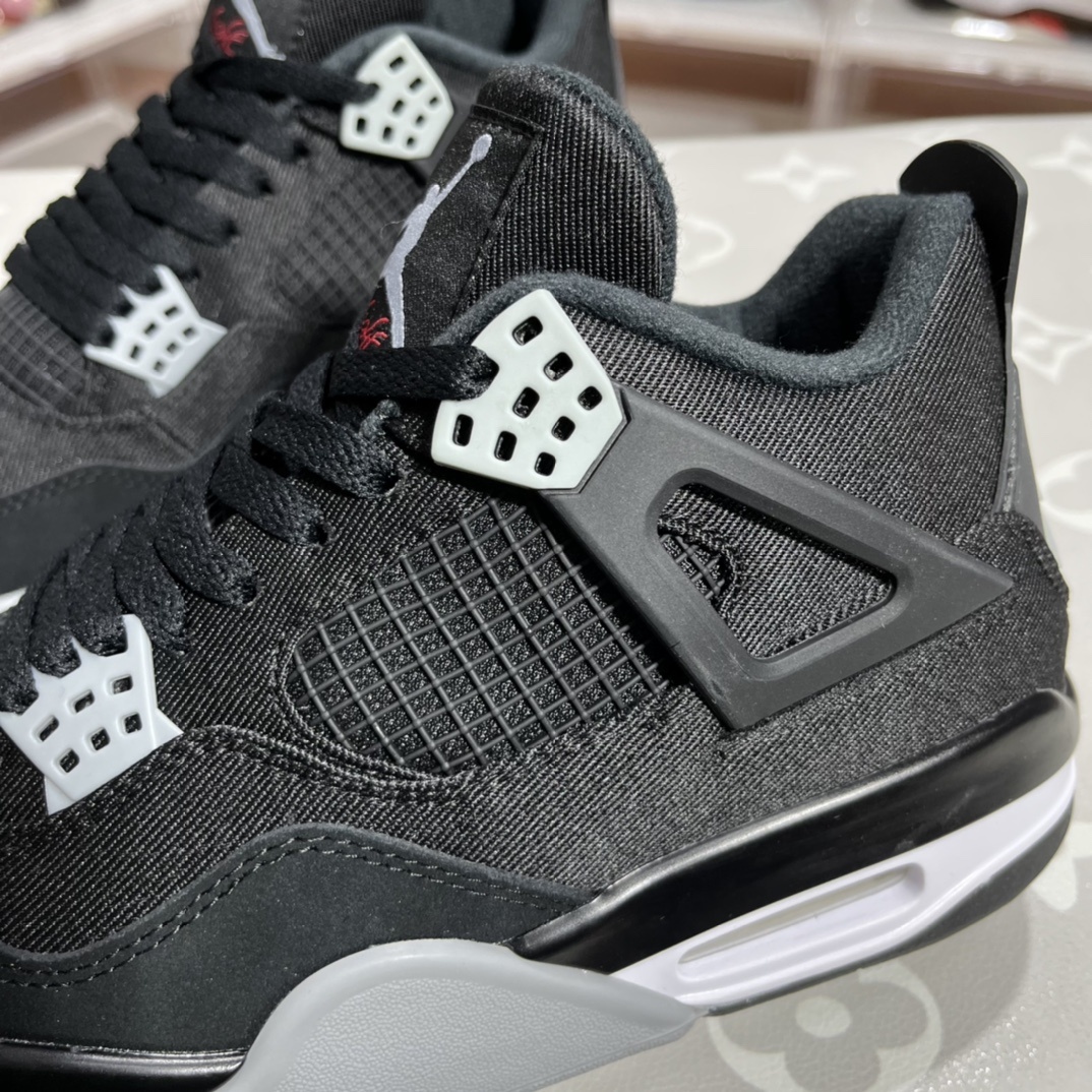 가성비 좋은 버전인 Air Jordan 4 Retro "Olive Canvas" AJ4 조4 블랙 그레이 데님 DH7138-006 신발의 앞면은 다크 브라운이 아닌 블랙 캔버스 소재로 제작