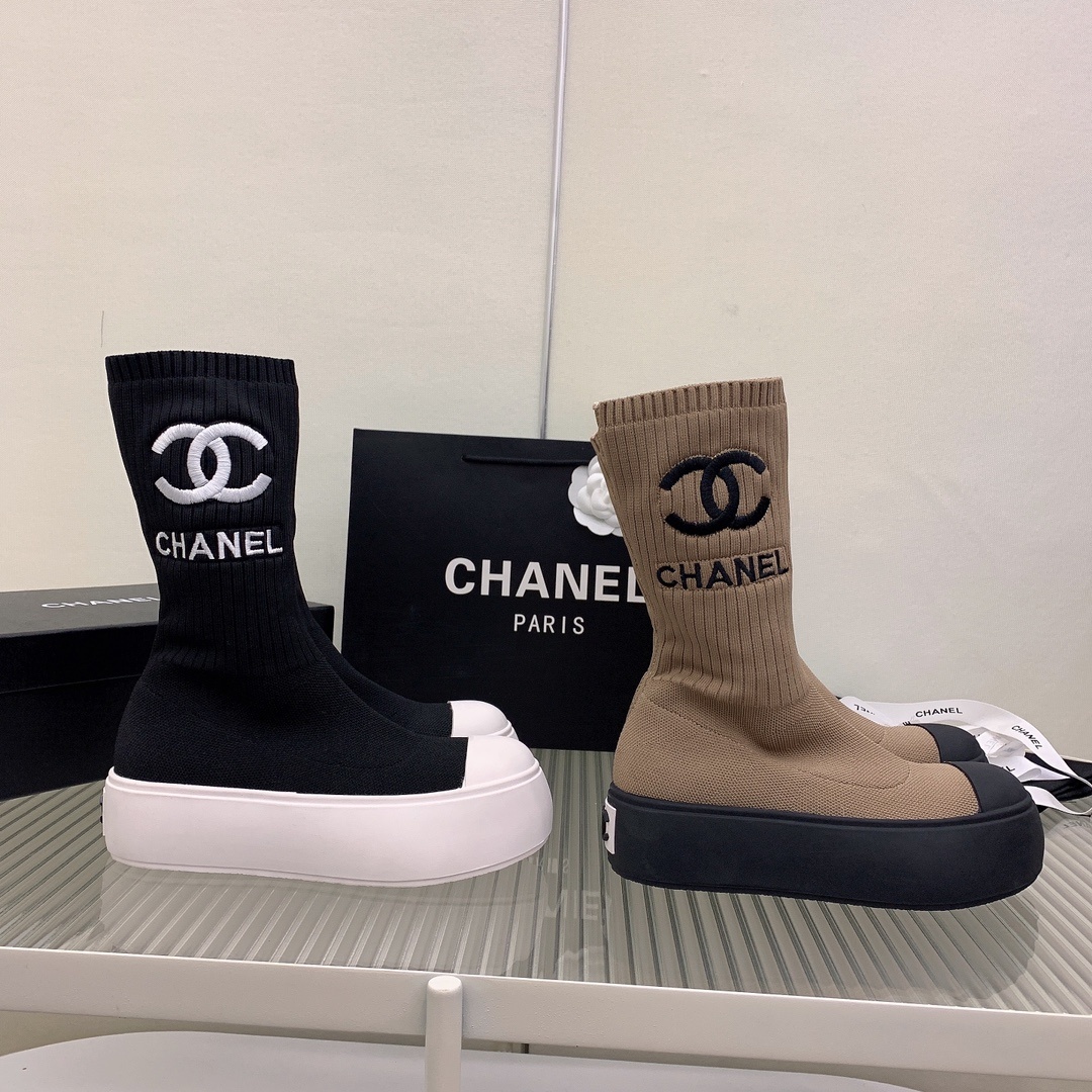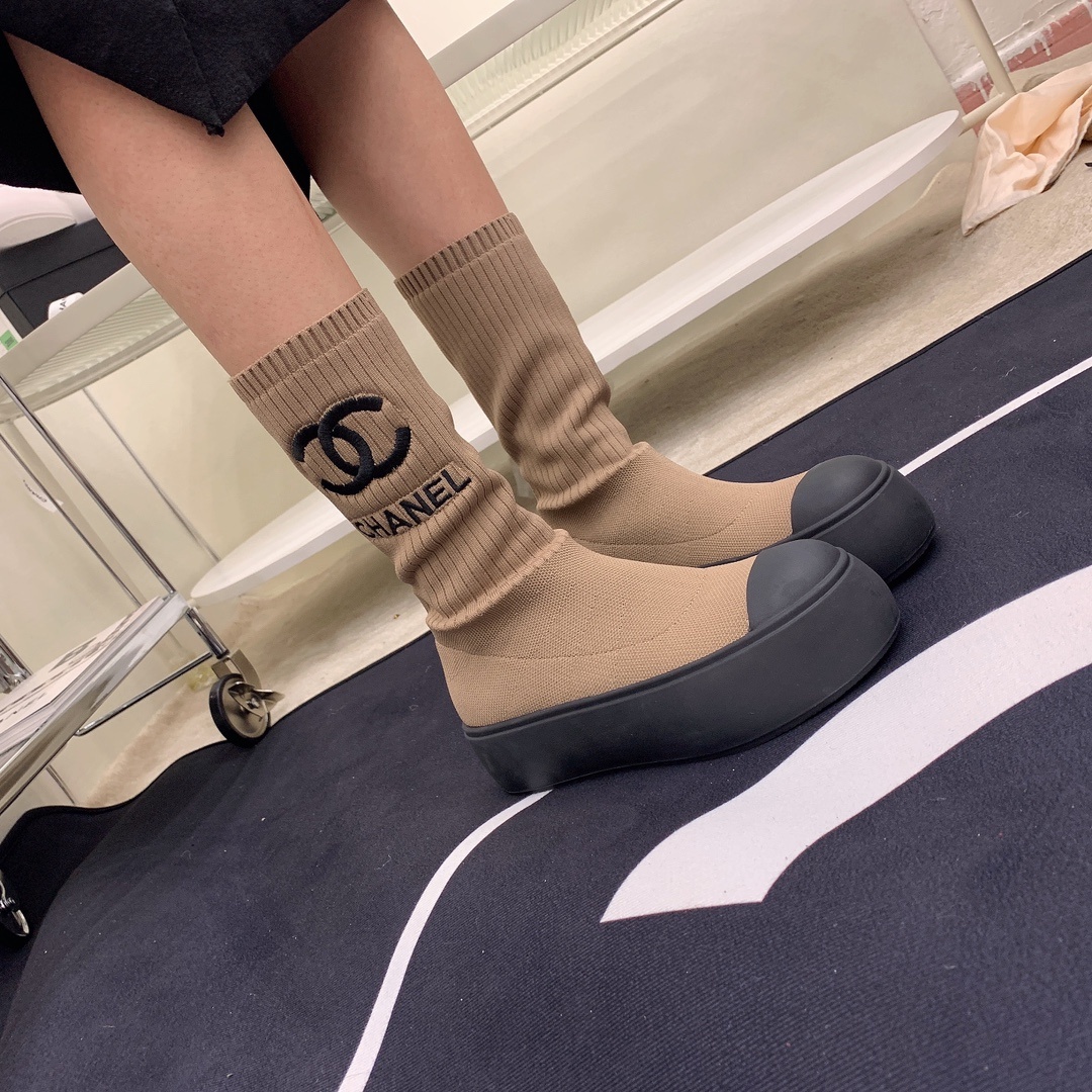 양말부츠 2022 가을신상 더블C로고니트 트레드슬릭부츠 슈즈만의 개성있는 디자인, 키높이, 슬림한 다리 상체 스타일 골지 니트 양말, TPU 오리지널