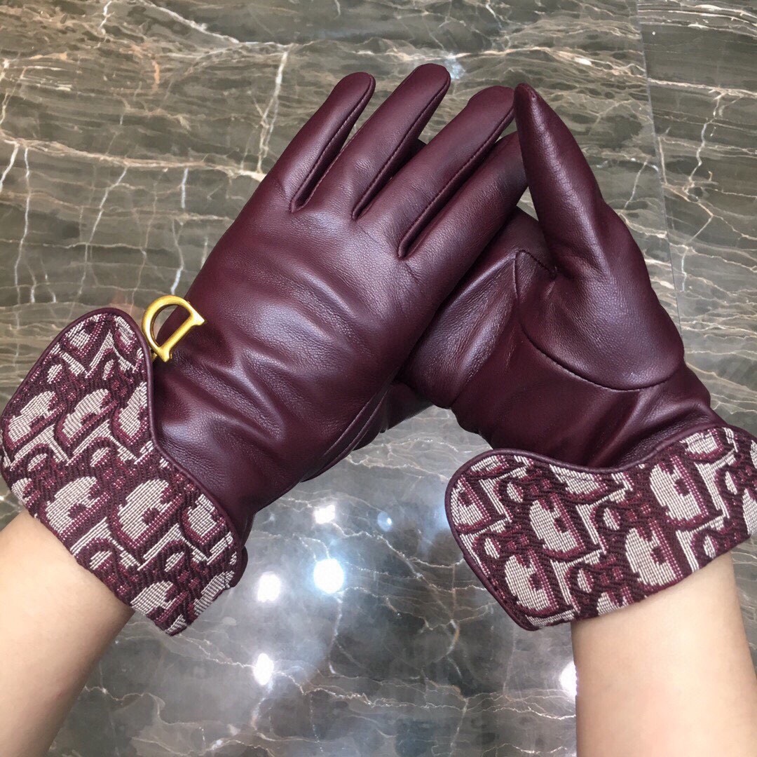 Dior 공식 홈페이지 싱크로 여성 신상 고급 양가죽 장갑 100% 수입 어린 양가죽 안감 캐시미어 보온성이 좋아 가죽 광택이 선명하고 부드러우며 섬세한 촉감 일품 오리지널 하드웨어 최상급 작업 정품 오프닝 구매대행급 매대 1대 1 패키지