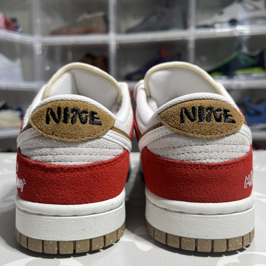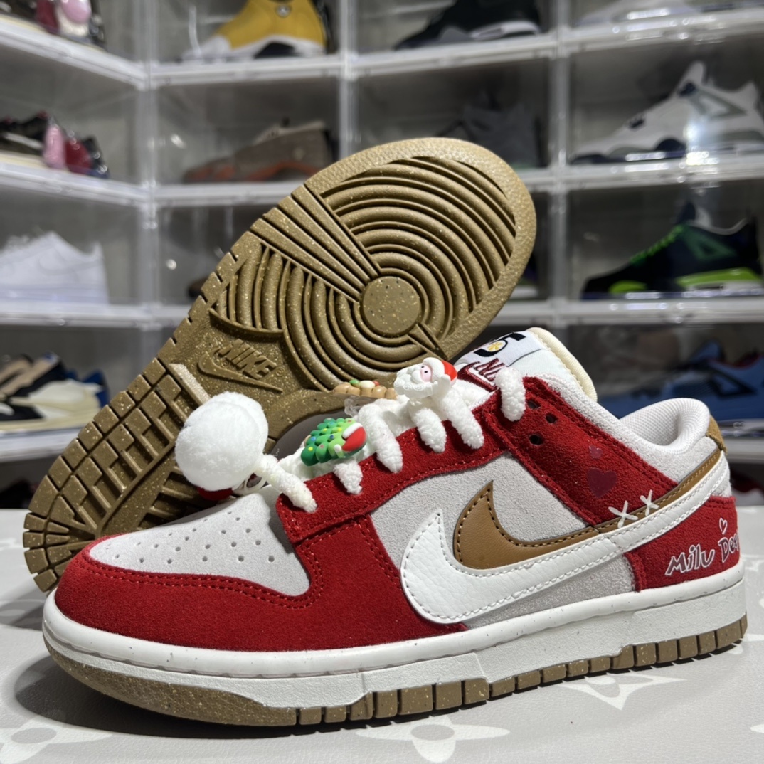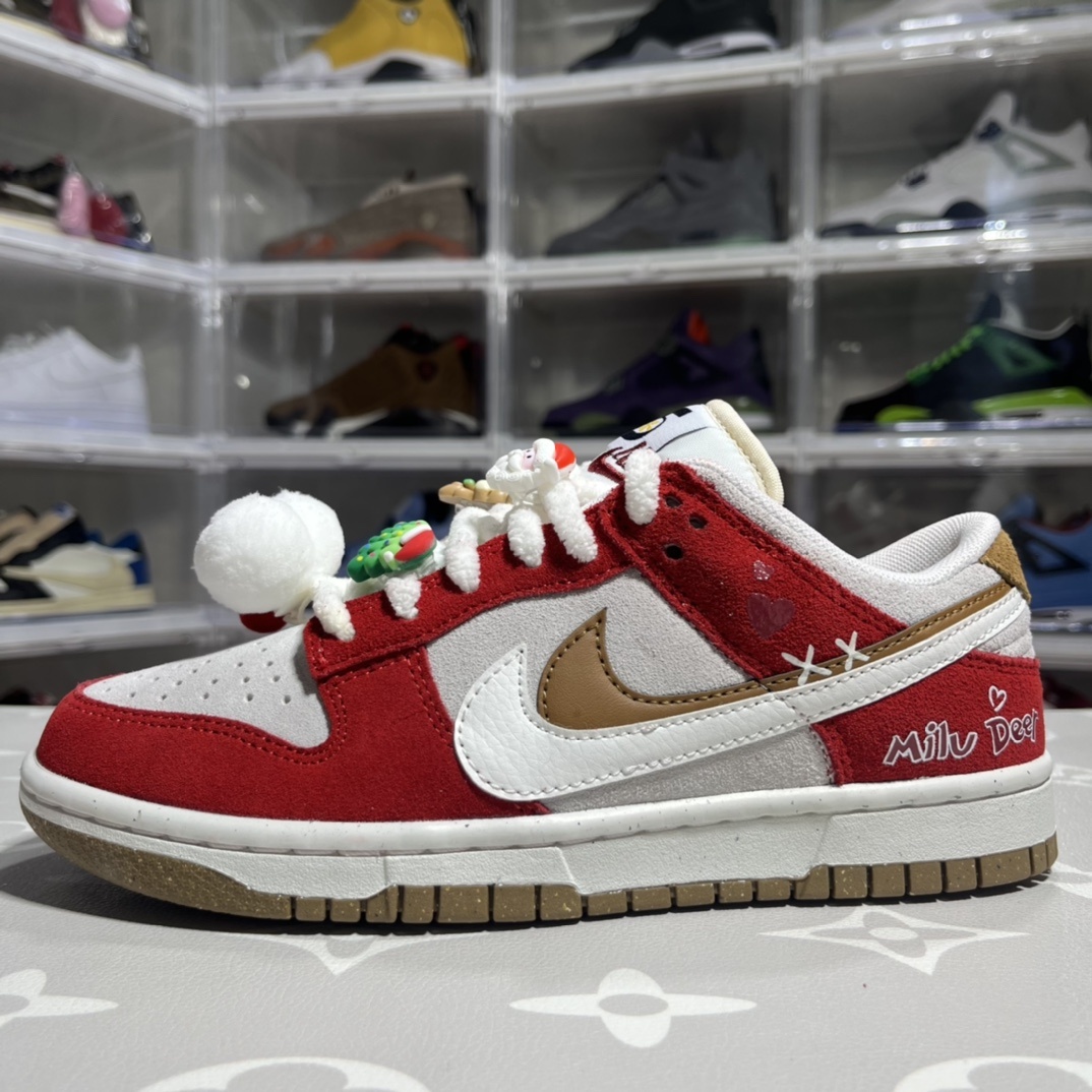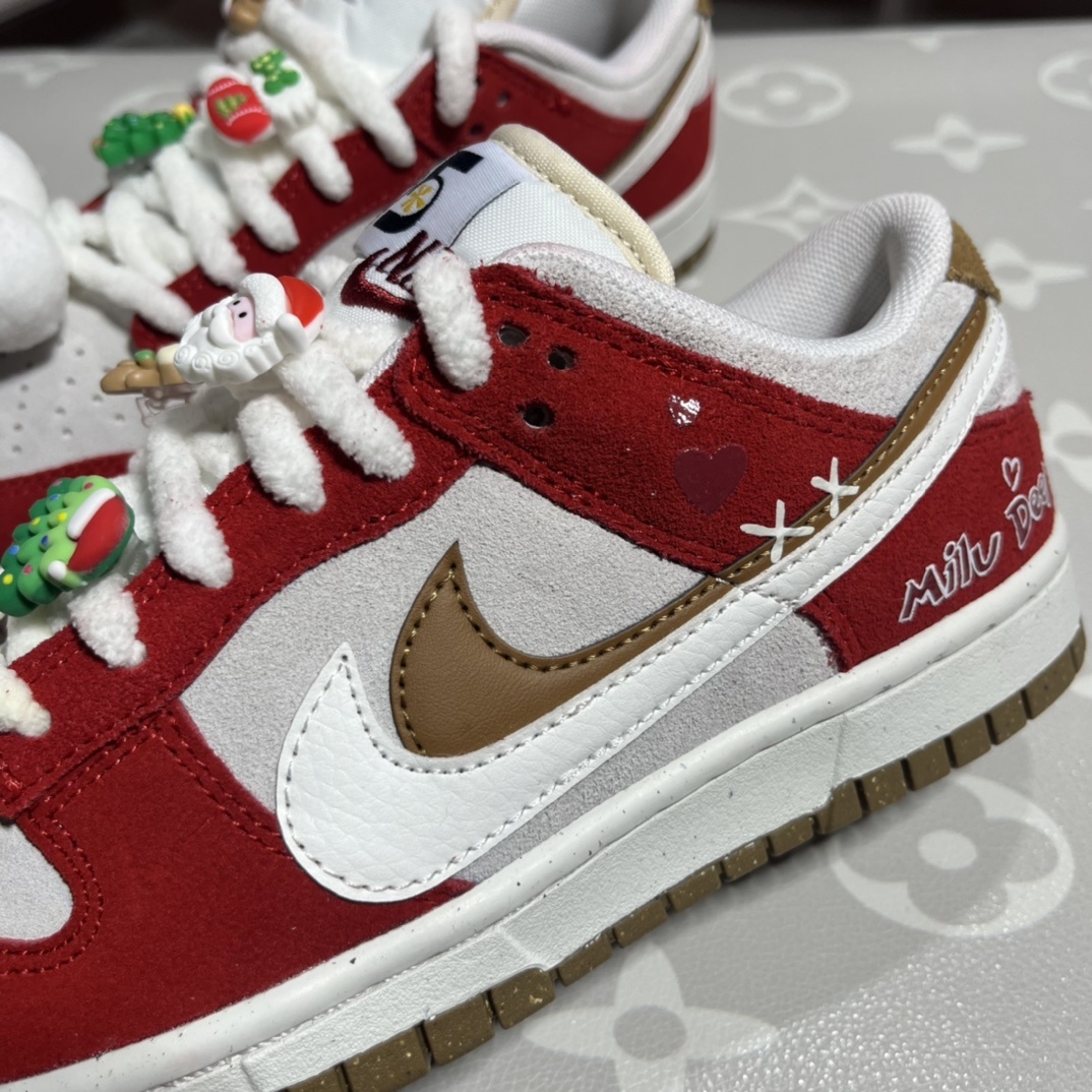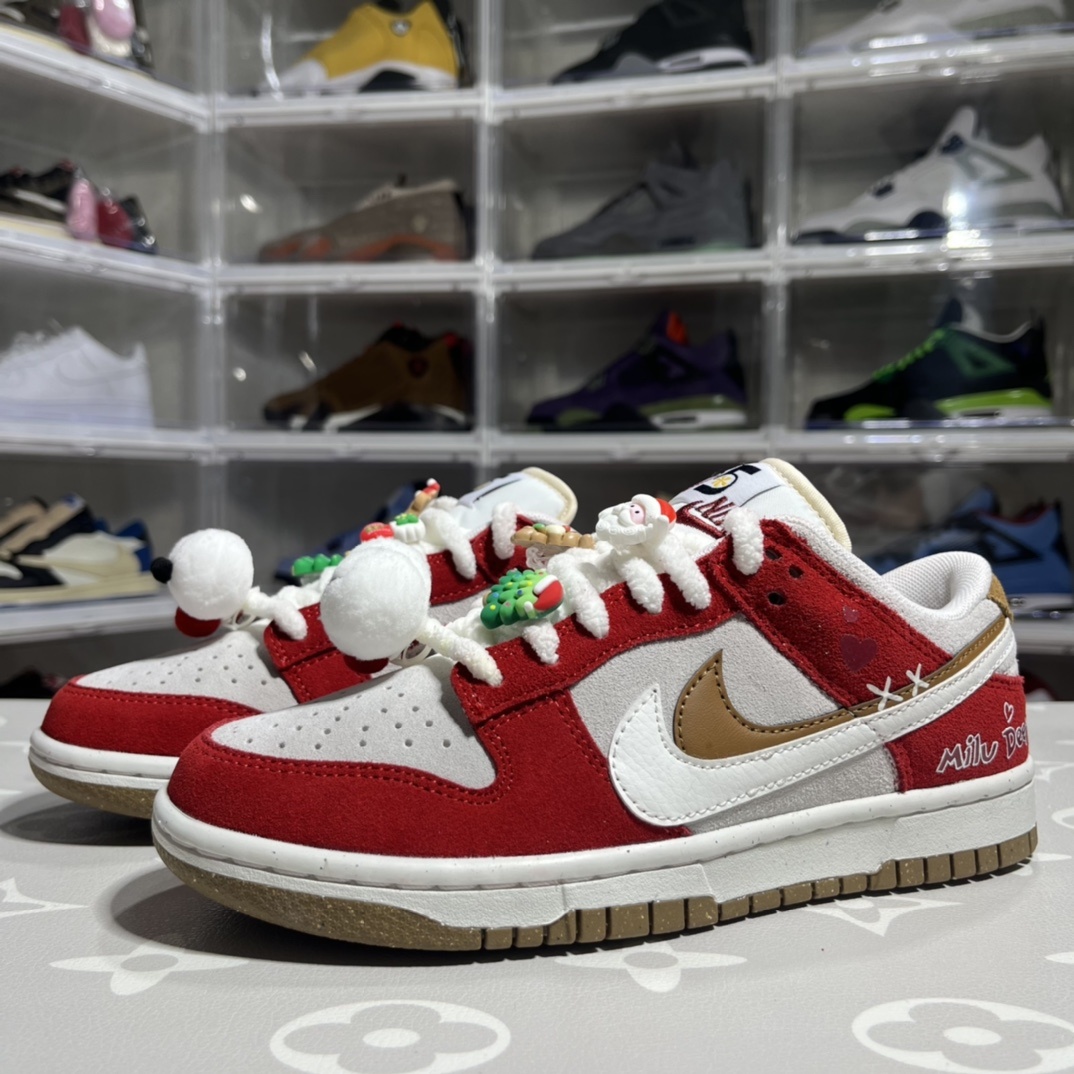 Nike Dunk Low SE "85" 클래식한 빈티지 슬립온 크리스마스 모티브가 출발점이며 레드 컬러로 질감이 가득 디자인적 영감으로 크리스마스 요소에 후크 디자인을 매치