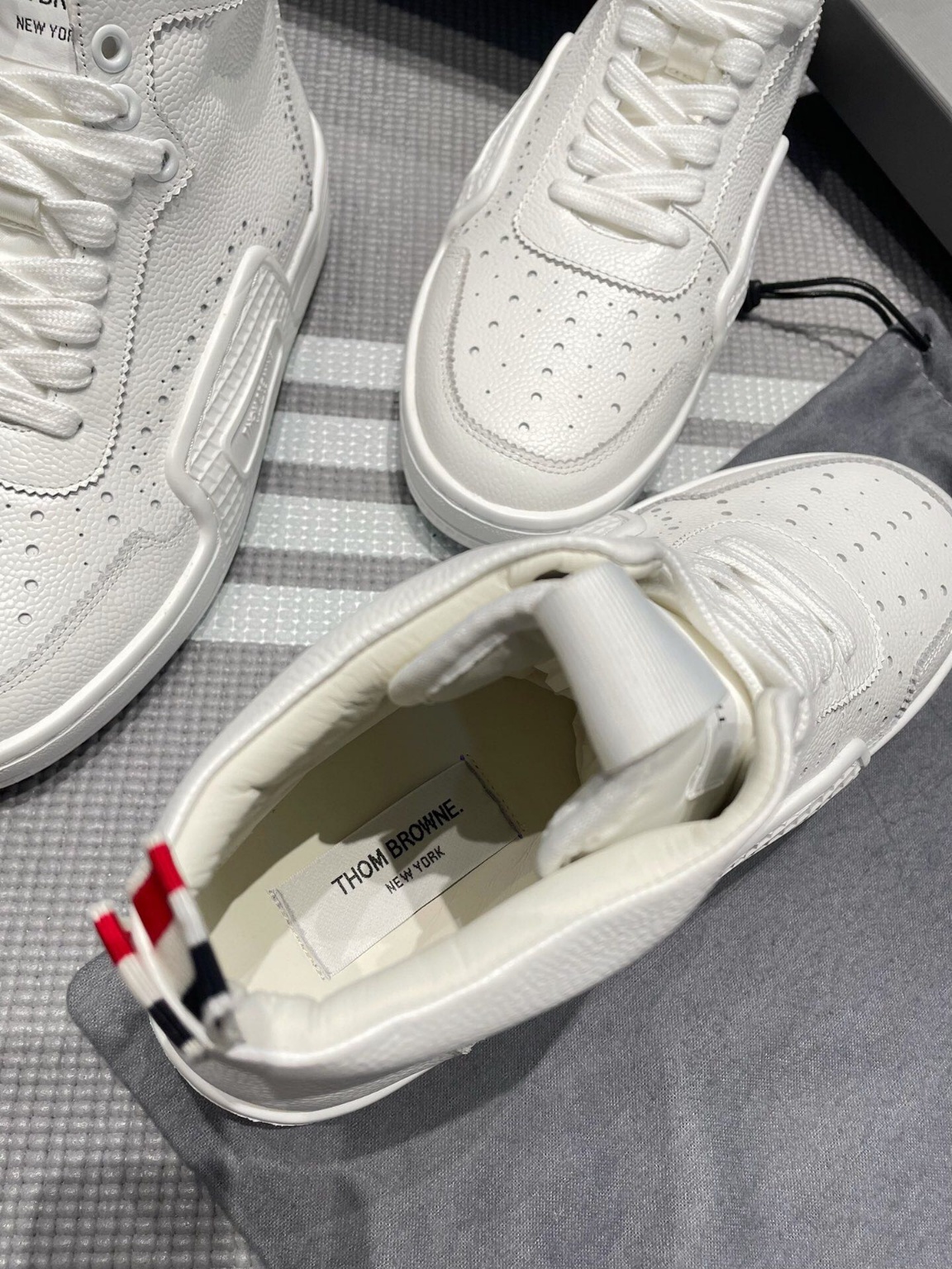 새로 나온 TB 커플 화이트 슈즈 안과 밖 모두 이태리 수입 소가죽으로 통기성이 매우 좋으며 촉감과 편안함은 일반 가죽과는 비교가 안 됩니다 재료를 잘 쓰는지 안 쓰는지 전체적인 질감이 확연히 나오네요 바닥 고무는 가볍고 마모에 강하며 실제 가죽을 사용하여 다른 슈즈보다 가볍고 편안합니다. 실력이 없으면 정말 TB를 건드리지 마세요.