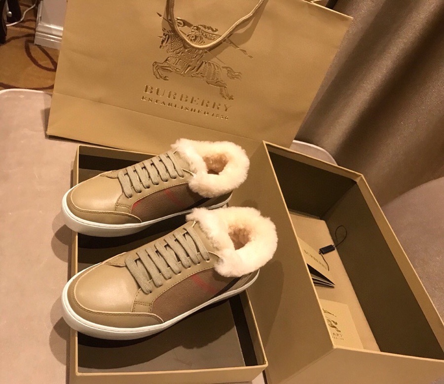 겨울 양털 속 운동화 신발 표면 수입 소가죽은 이탈리아 공방에서 생산 앞면:70% 소가죽 30% 하우스 안감:10% 양가죽 90% 울 100% 우레탄 굽에 버버리 레터링 로고