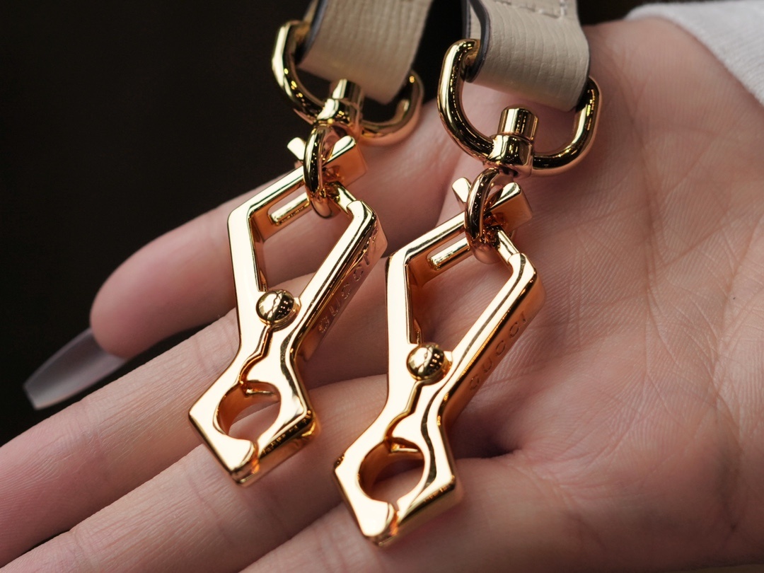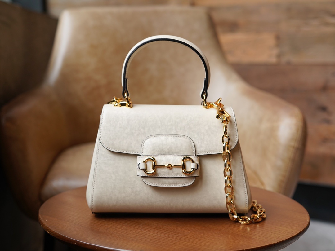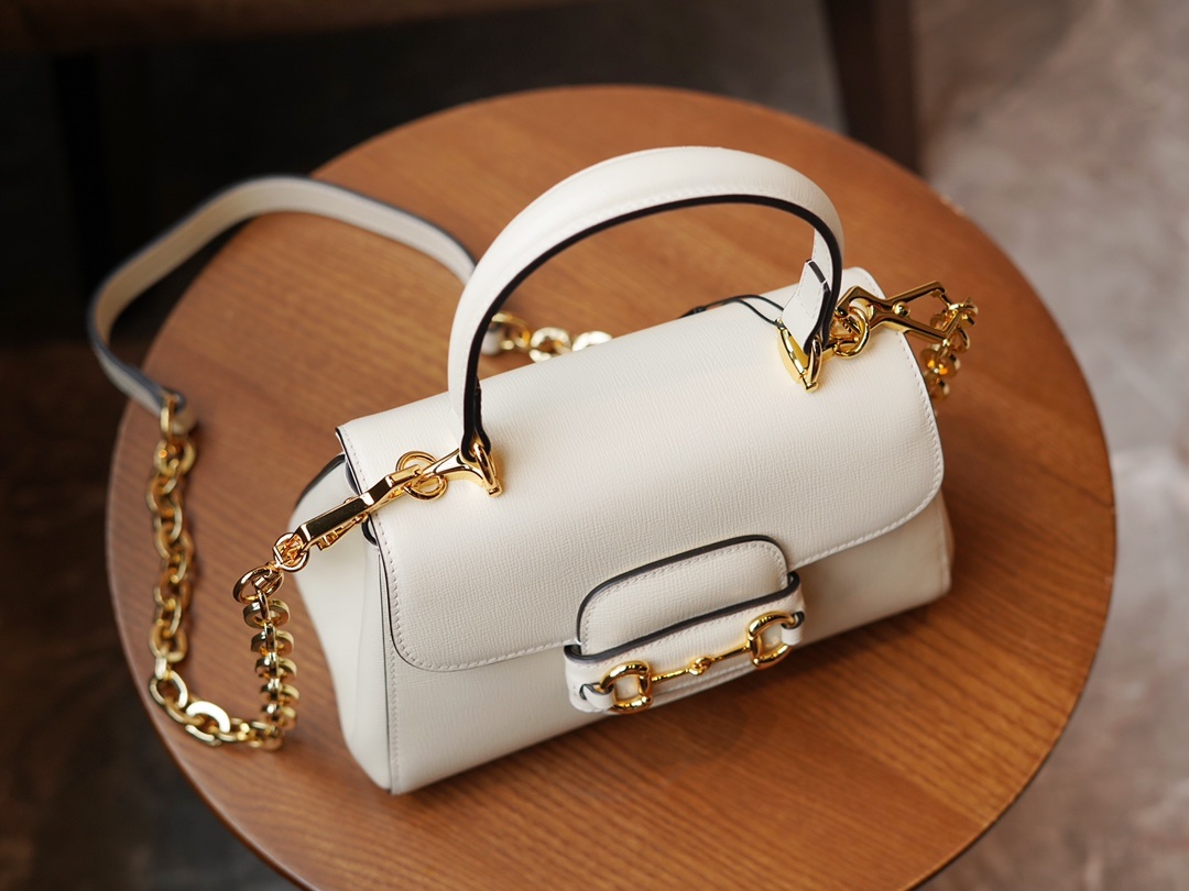 Horsebit 1955 컬렉션의 토트백은 화이트 가죽으로 표현되었으며 브랜드 승마에서 영감을 받은 디자인으로 더블 링과 롱 스틱의 두 가지 요소로 구성되어 있으며 오늘날까지 브랜드의 아이덴티티 중 하나가 되었습니다. 사이즈 : 22*16*10.5cm 입니다. 모델번호:703848