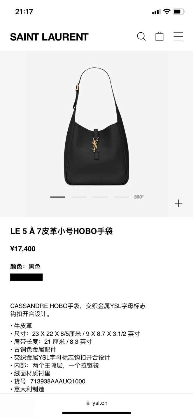 YSL 가을 겨울 신상 호보 엘레강스+편안한 스타일링 로즈 같은 호보백 바디는 소가죽 소재로 가죽이 부드럽고 스타일리쉬합니다 모델번호:713938 사이즈 : 24×24×10