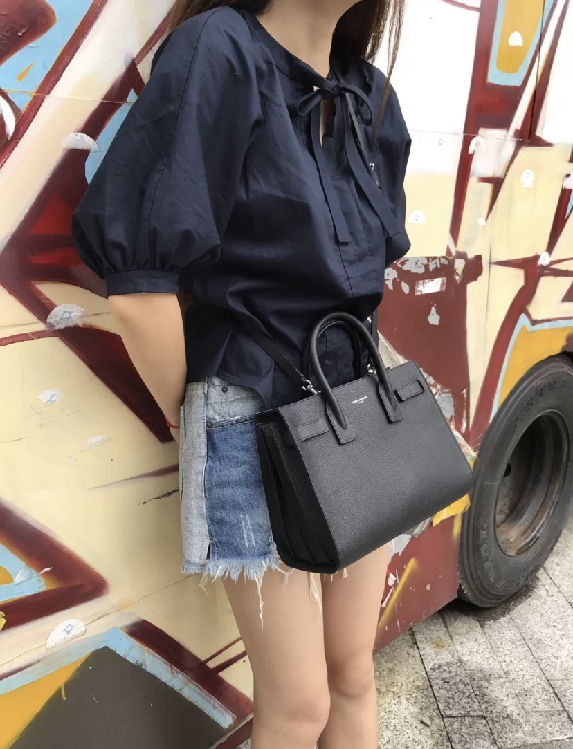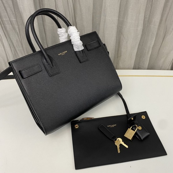 CLASSIC SAC DE JOUR 초미니 엠보 가죽백에 토트 2개를 매치 탈부착이 가능한 가죽 스트랩과 자물쇠가 내장된 가죽 커버 가죽 튜브 핸들과 오르간식 측면에 스냅 버튼이 있으며 탈부착이 가능한 가죽 크로스 스트랩과 탈부착이 가능한 가죽 커버 피복형 자물쇠가 있습니다. 모델번호:421863 사이즈:26 X 20,5 X 12,5 CM