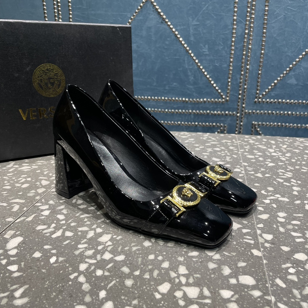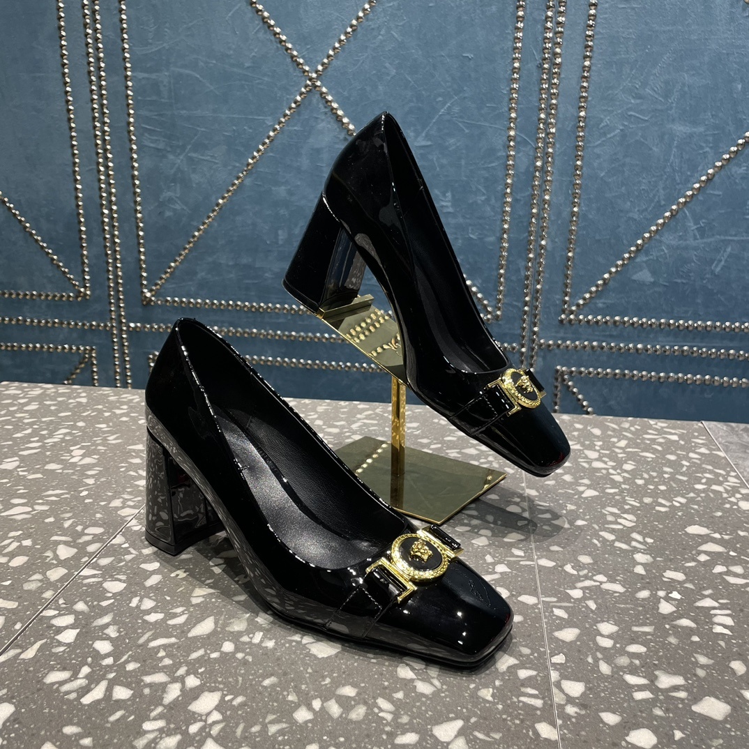 프리미엄 버전 오리지널 신발 개발 골형 신발 표면: 소 에나멜 창/창+메두사 프로필 사진 오픈버튼 : 드릴버튼, 에나멜버튼 속:양가죽 베이스:진피 베이스 굽:7.5cm