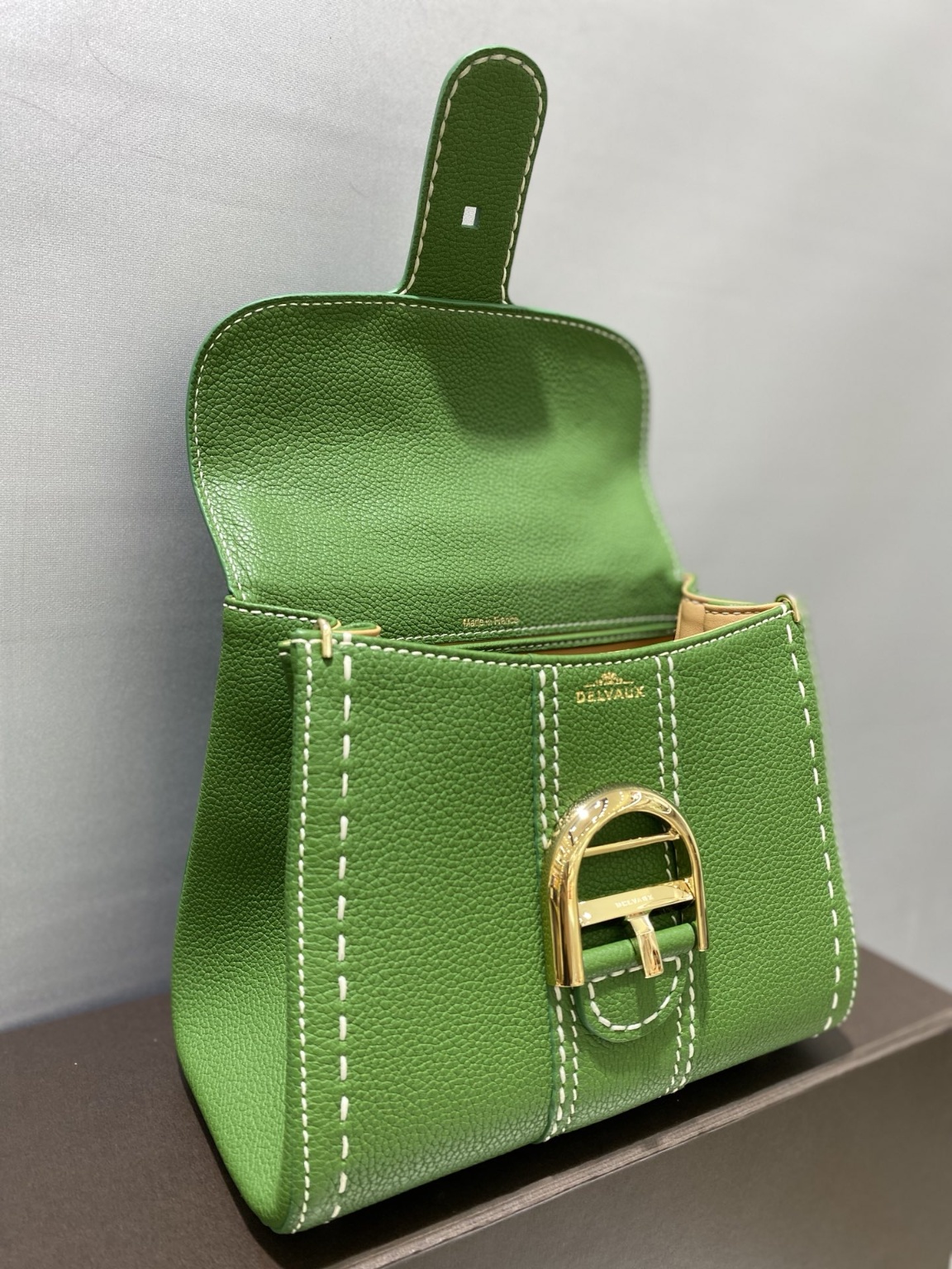 [Delvaux]브리앙 외봉초록 벨기에 로열 브랜드, 럭셔리, 반손 스티치 왁스 실 공법. 어깨끈, 거울, d표 조절이 가능한 세트 양가죽 속~ 20*12*15.5