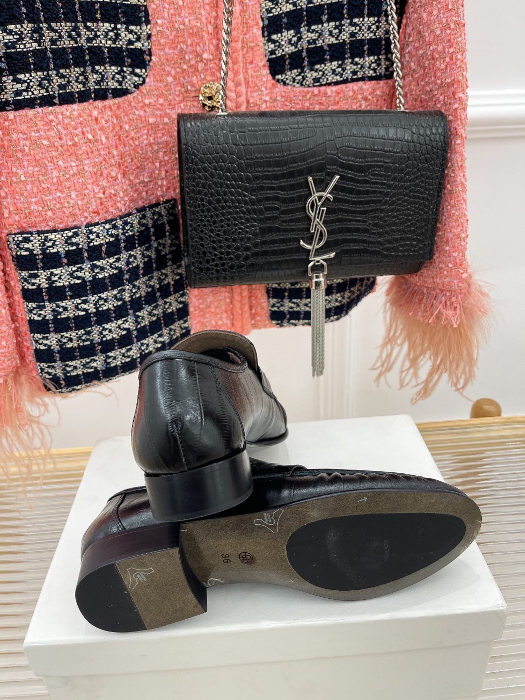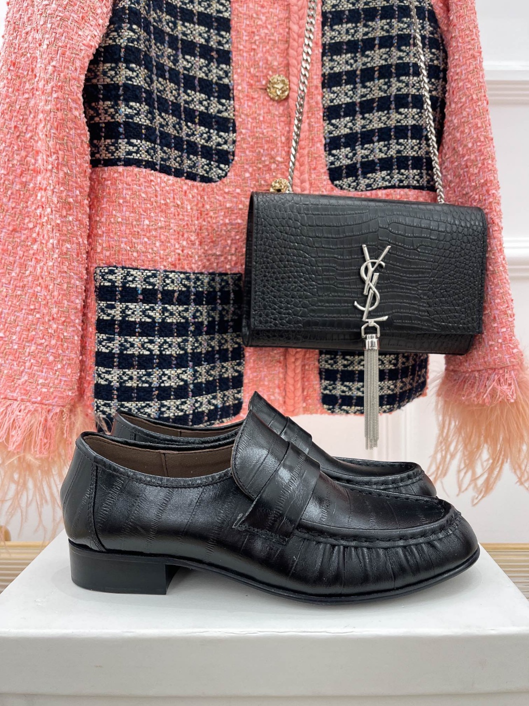 더 로우 23ss 이른 봄 신상품 셔링 로퍼 전체적인 디자인이 세련되고 수려하며 편안함 신발 겉면은 수입 장어가죽 소재 속물이 양가죽을 물들이다 이태리 수입 소가죽 통굽