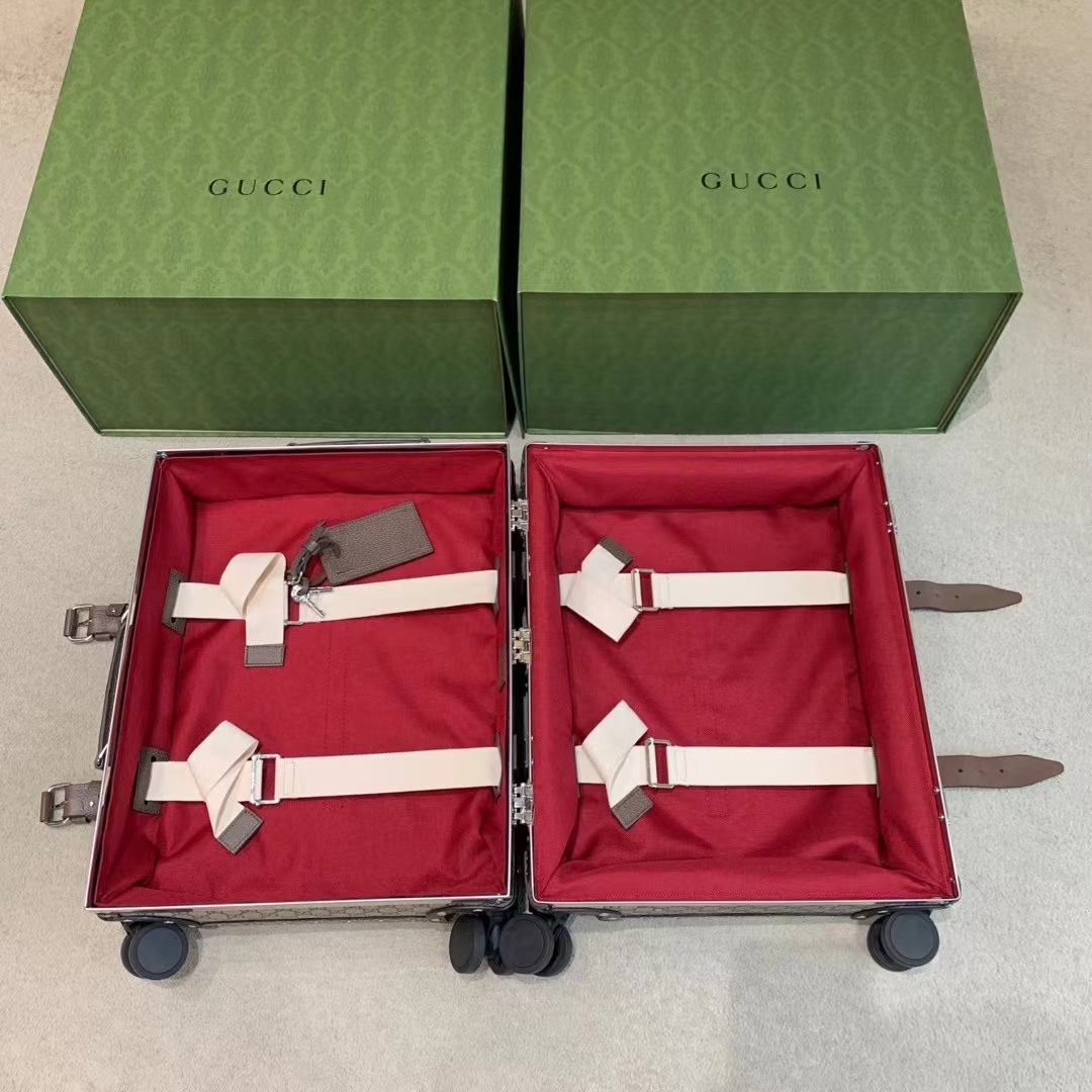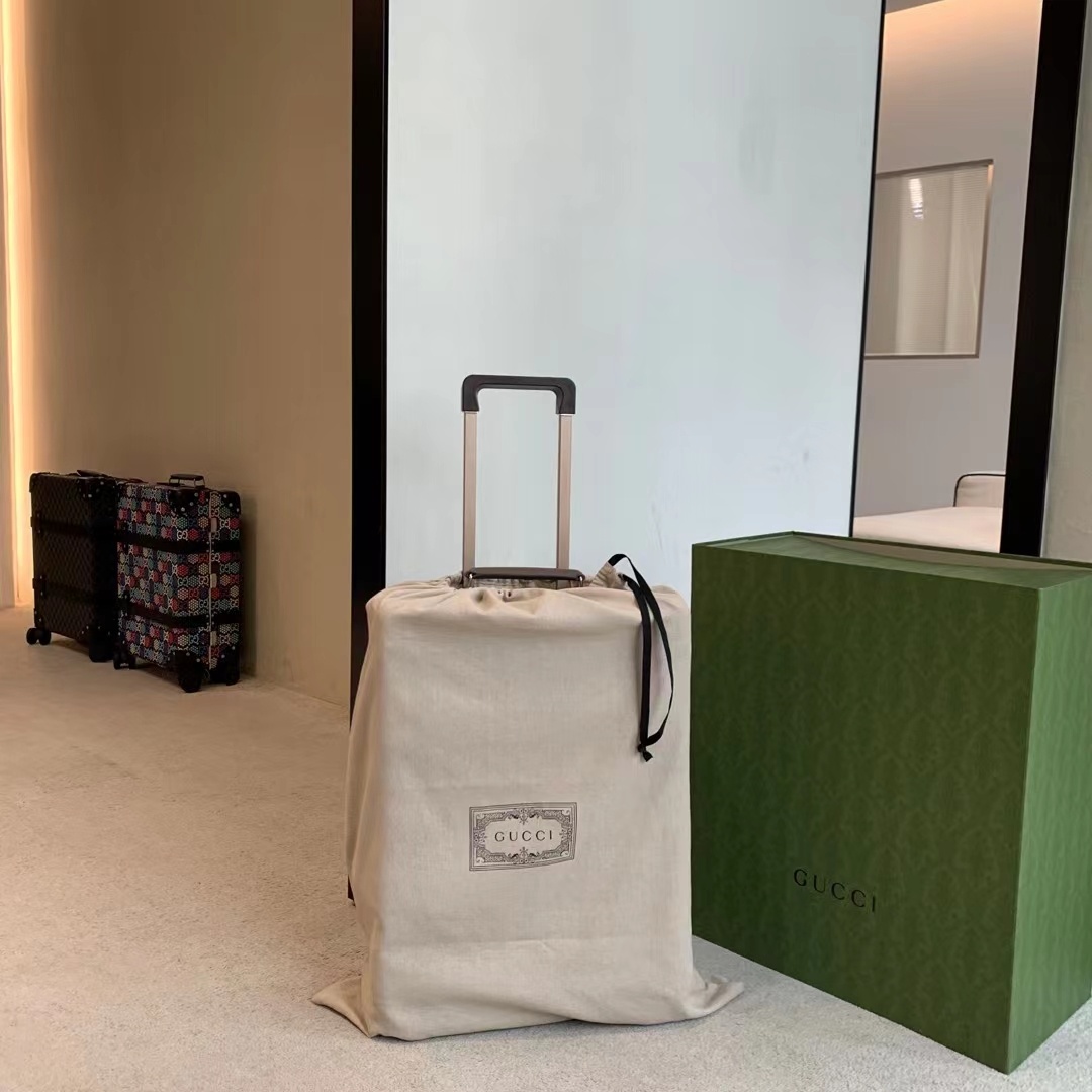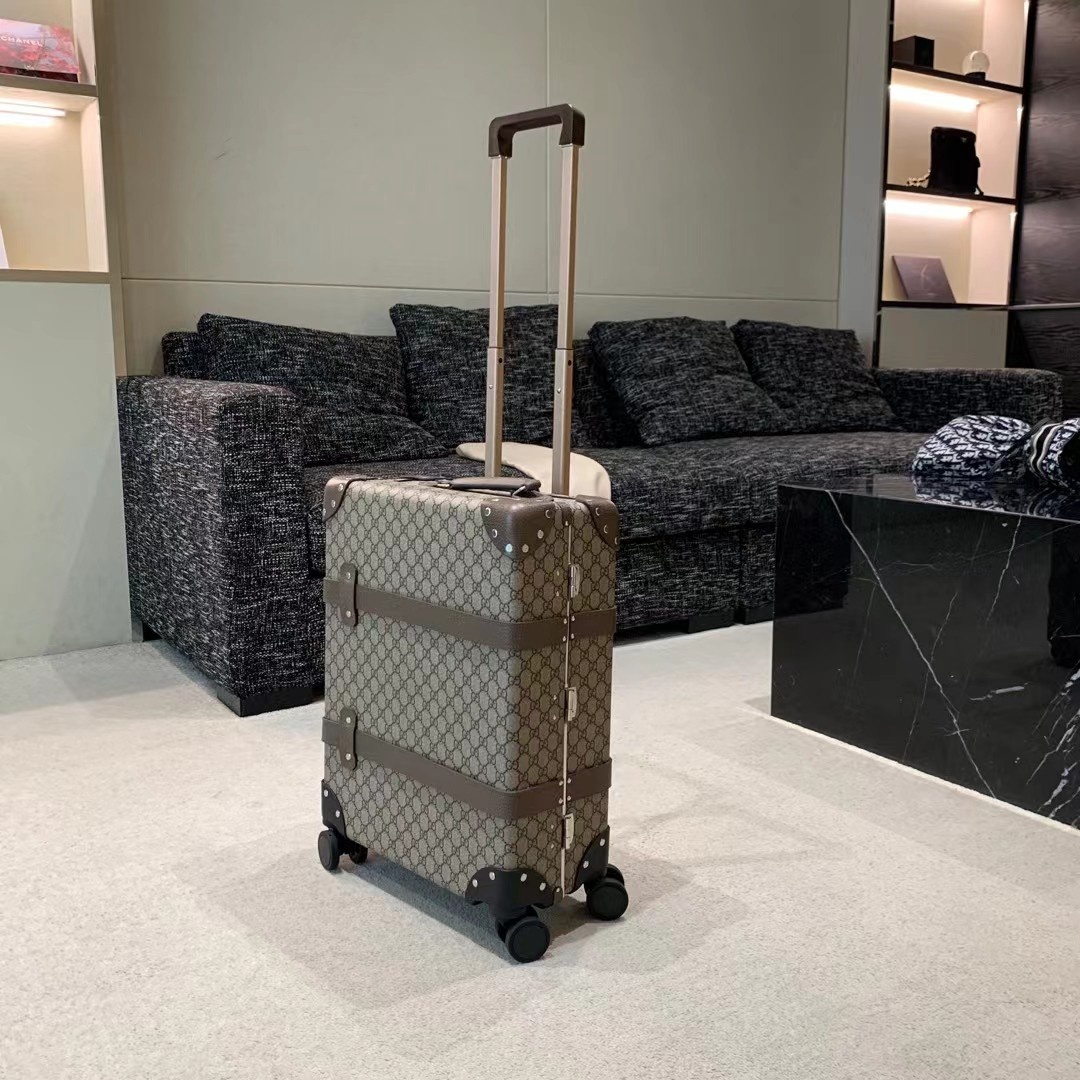 글로브-트로터 컬렉션 GG캐리어 구찌와 영국 왕립 여행가방 브랜드 글로브-트로터의 콜라보레이션 먼저 이 100년 된 여행가방 브랜드에서, 독자적인 캐리어 제작 기술로 만들어진 케이스는 방수 및 내구성이 있을 뿐만 아니라, 하나하나 모두 농후한 것을 가지고 있다. 손잡이와 8개의 상자 발은 모두 영국 최고의 소가죽으로 싸여 있고 촘촘한 바느질로 고정되어 있습니다. 가죽이든 안감이든 전부 장인이 손으로 재단한다 에메랄드 GG 슈프림 캔버스부터 브라운 컬러의 가죽 트리밍 포뮬러로 네모난 스타일로 빈티지한 분위기가 물씬 풍긴다.