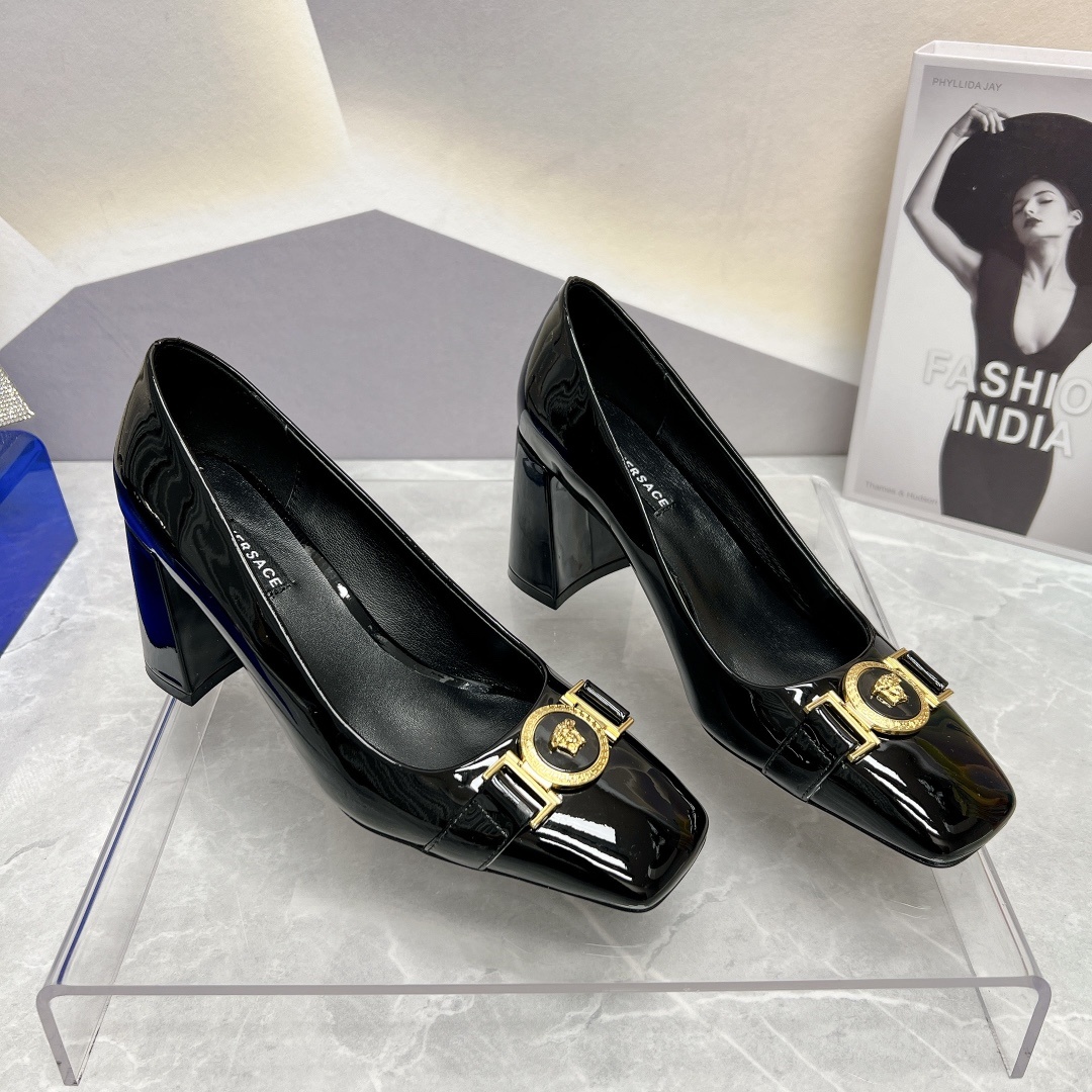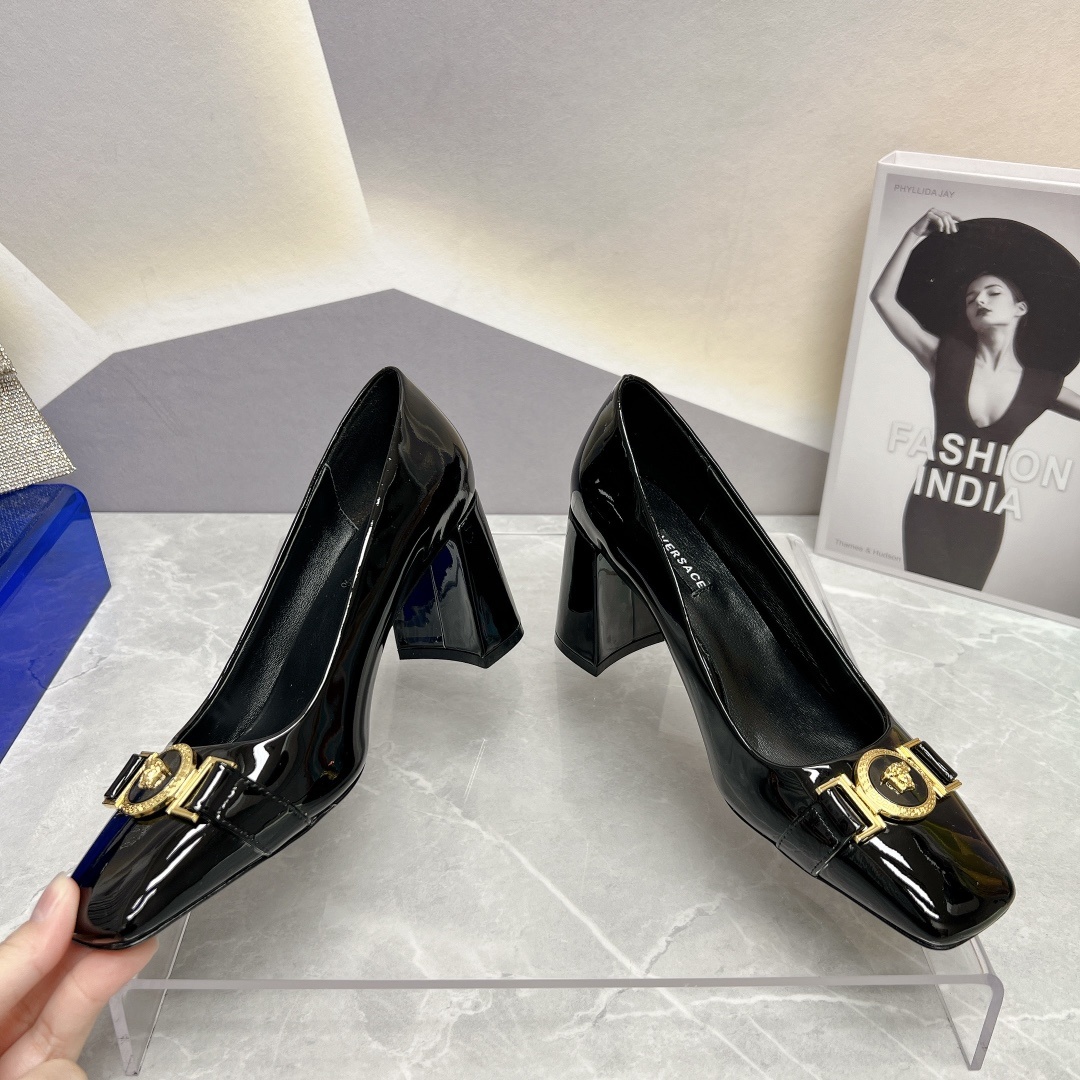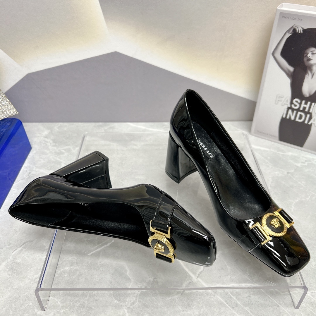 베르사체 23vs 이른 봄의 최신 쇼케이스의 새로운 하이힐 라인 [사각 메두사 원버튼 단화] 신발 표면: 오리지널 커스텀 에나멜 ➕ 오리지널 오픈 인두 라운드 속: 수입 양가죽 징검다리: 수입 양가죽 베이스 : 이탈리 수입 가죽 베이스 굽:7.5 포장: 오리지널 풀 패키지