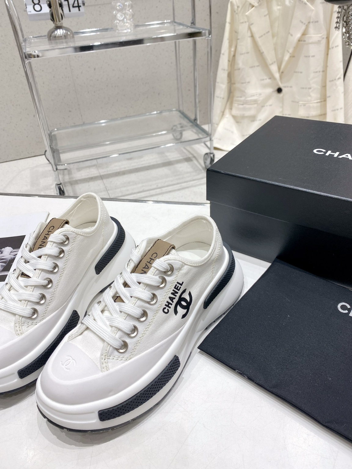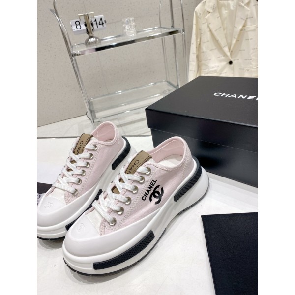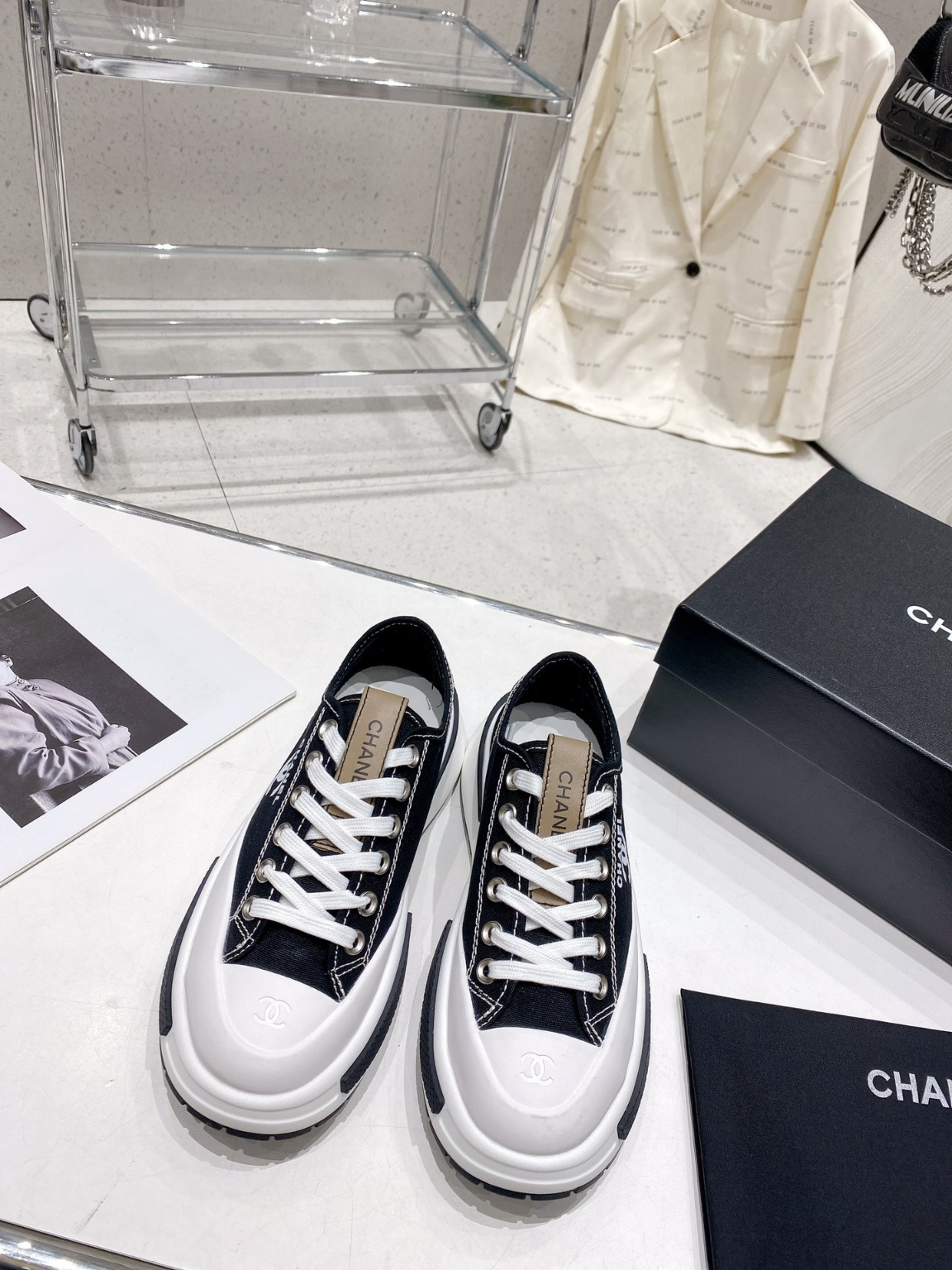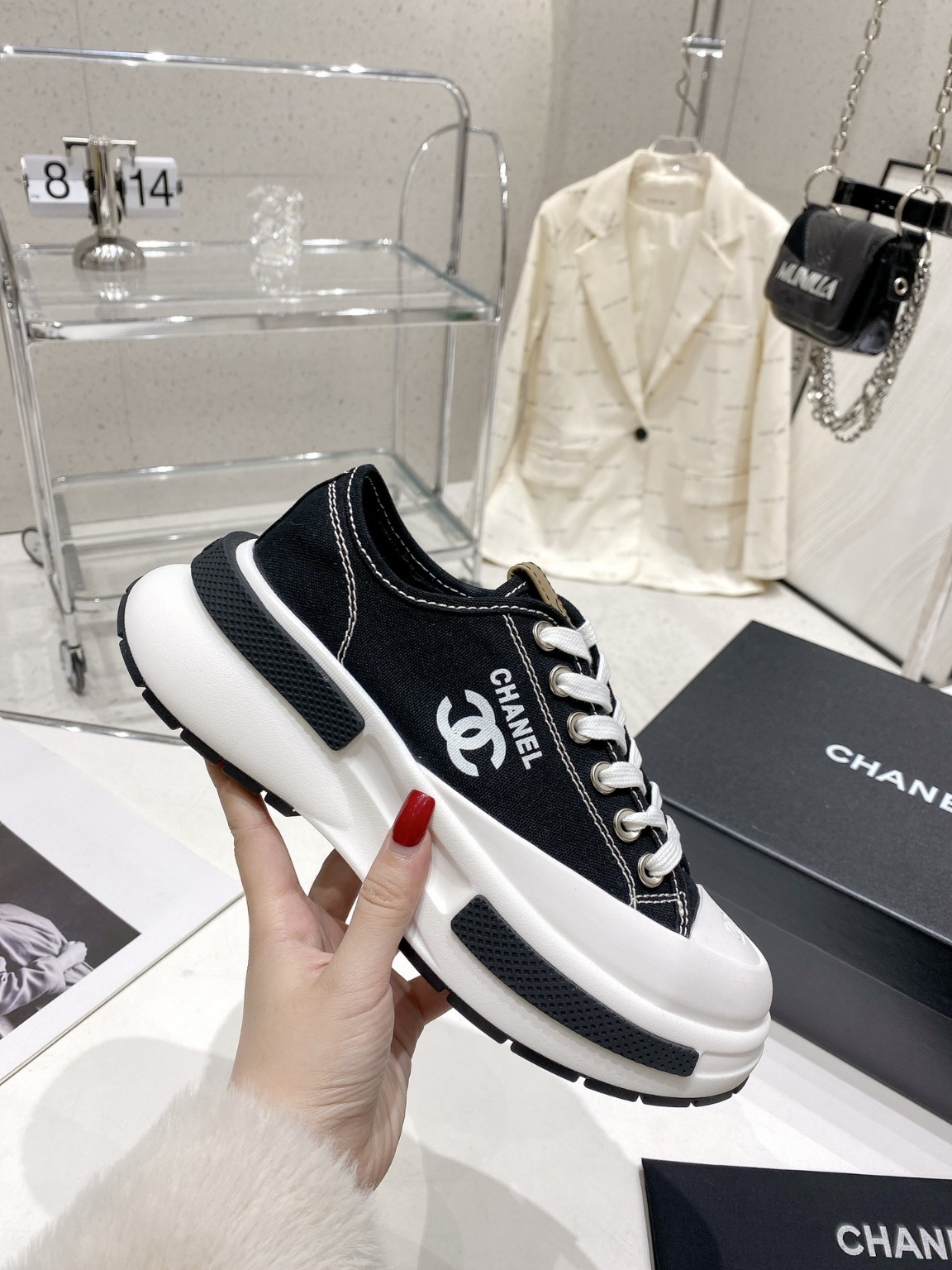 Chanel 샤넬의 최신 통굽 쿠키 슈즈 현재 대유행인 쿠키 슈즈 겉감: 오리지널 주문 캔버스 발받침: 물감 소가죽, 발감 편함 빅베이스: 오픈 고탄고무