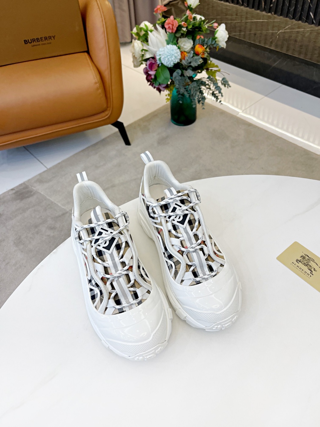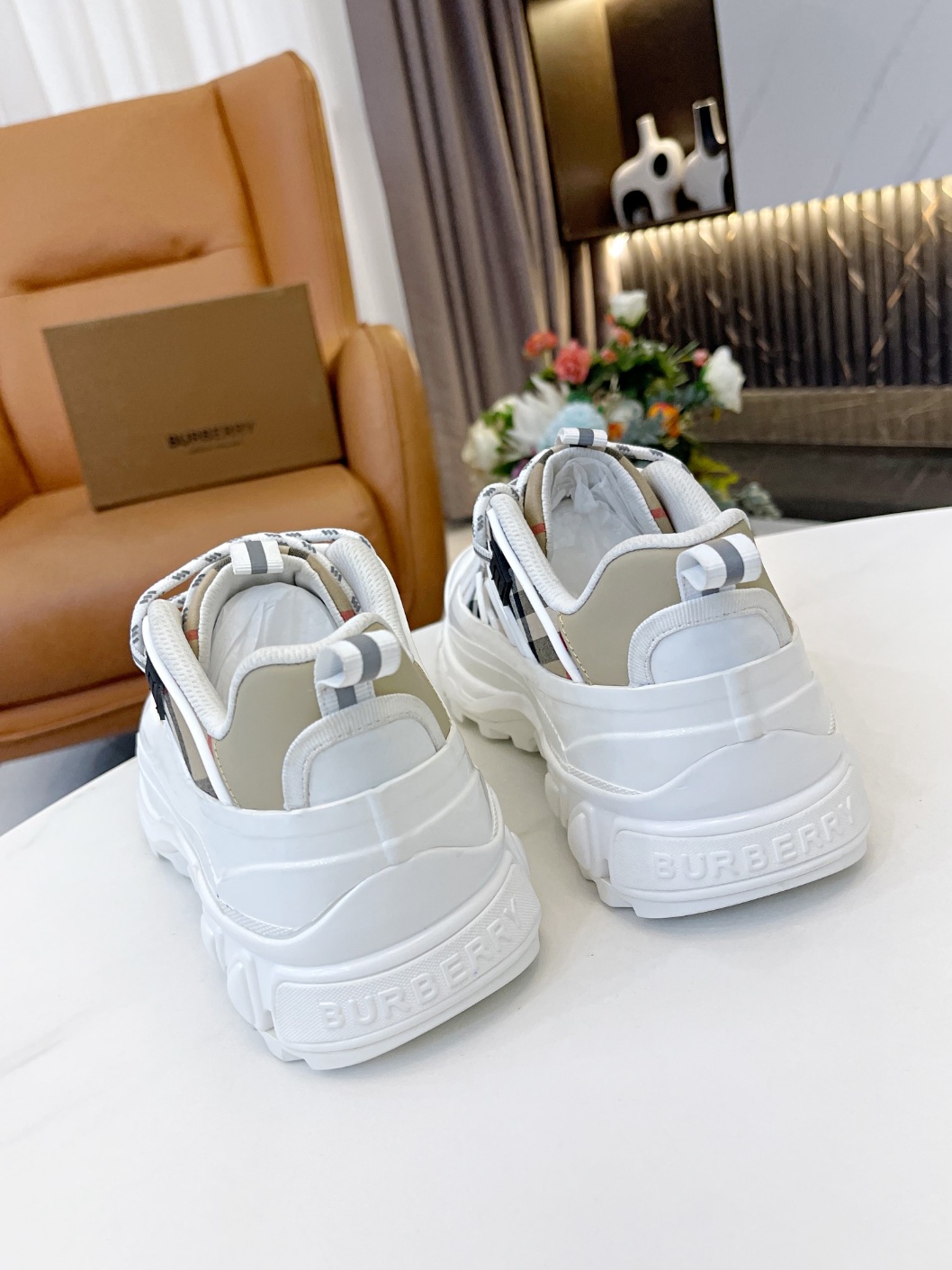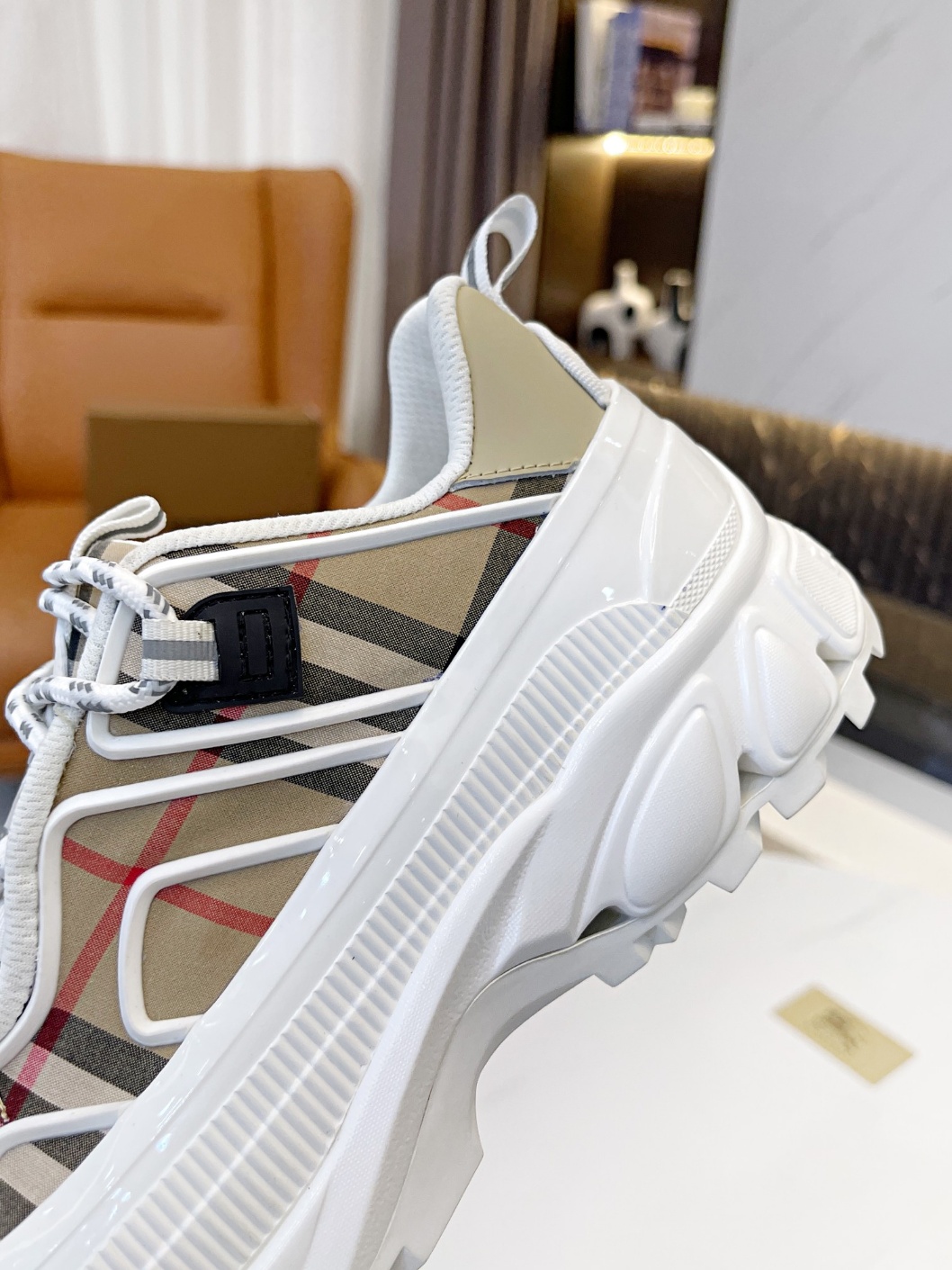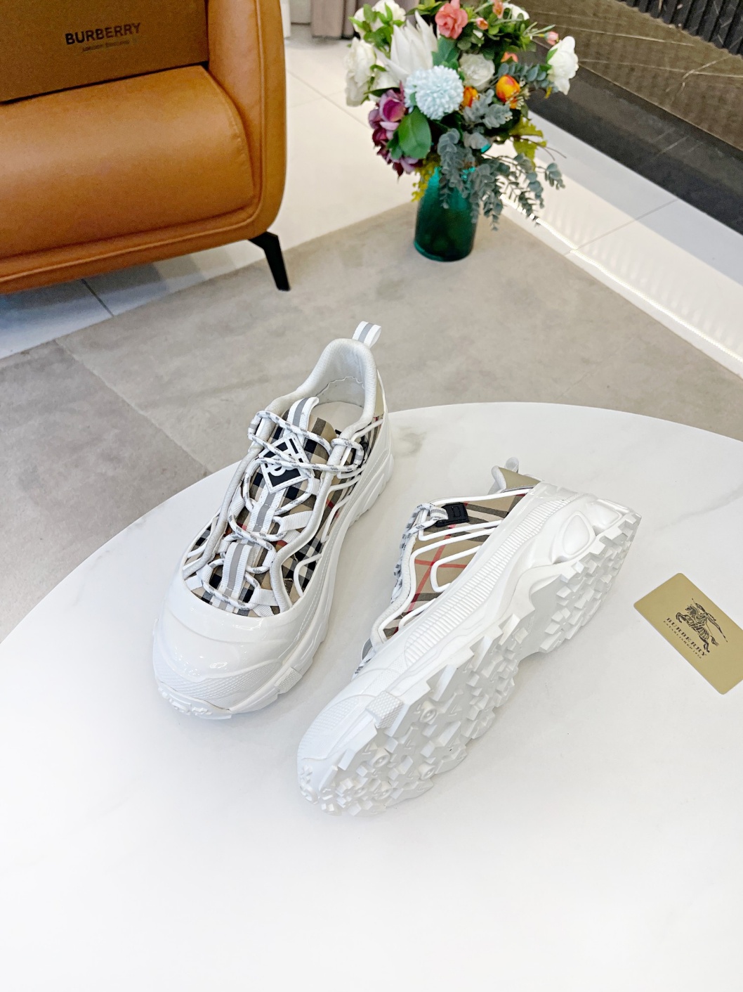 버버리(Burberry)의 2021년 패션쇼 스타일 운동화 겉감: 순면+실크 소가죽입니다 안감:원판망 속+양가죽입니다 대저 : 3단 콤비 TPU 입니다 색상 : 블랙화이트 입니다 포장 : 원판포장입니다