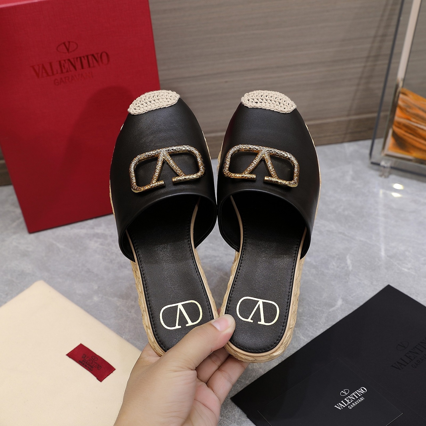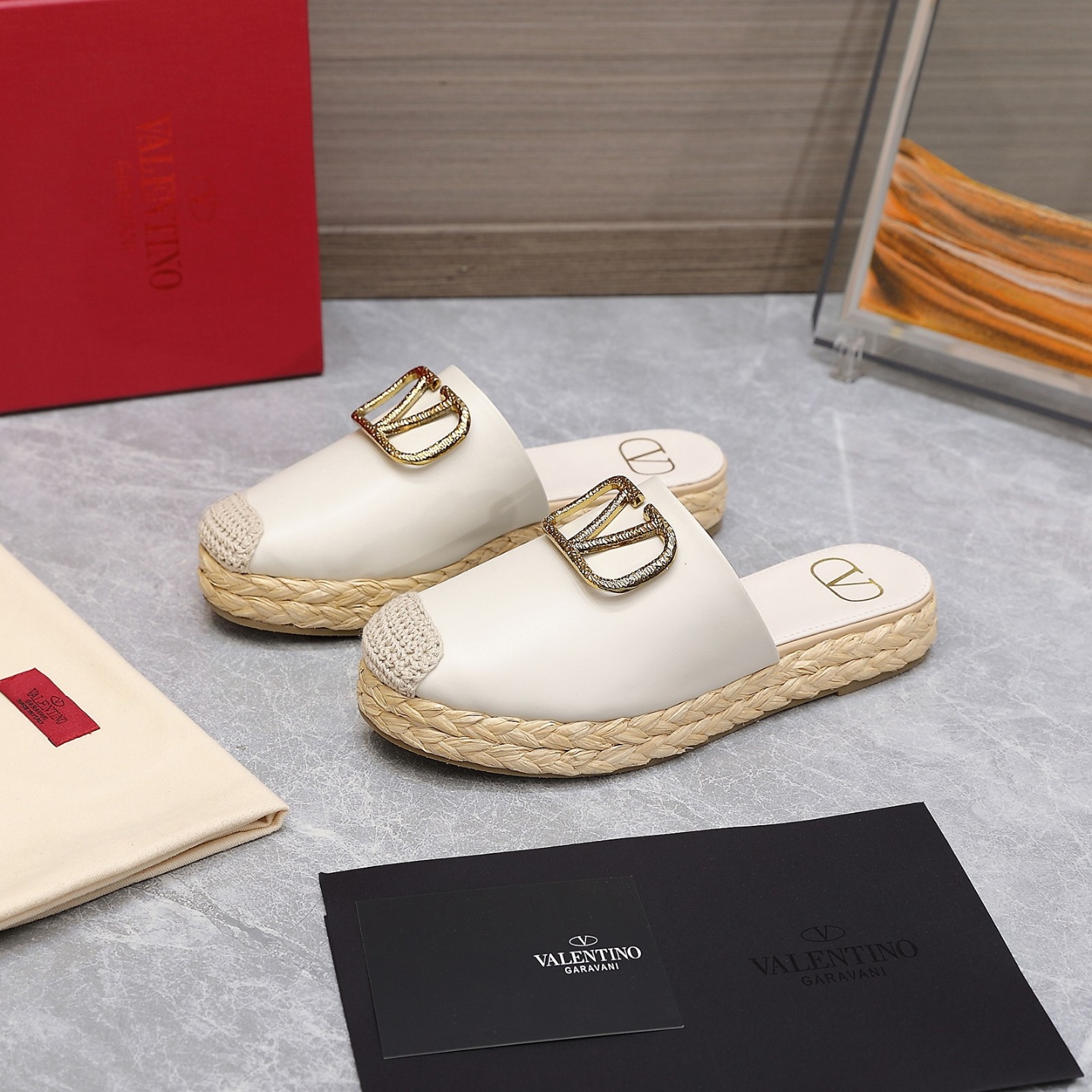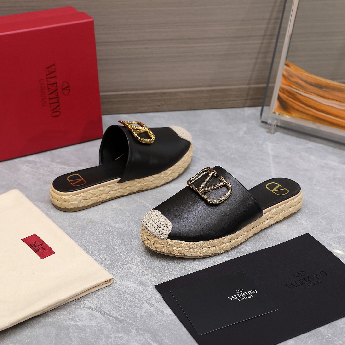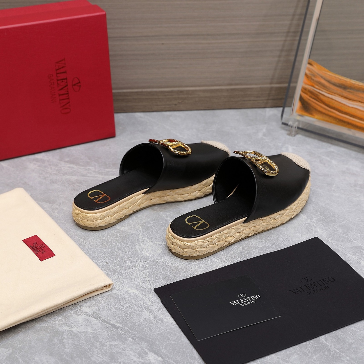 발렌티노 에스파듀 삼끈 바닥 슬리퍼 2022 최신 메탈 로고 밍크 통굽 슬리퍼 플랫 오리지널 구매 1:1 프리미엄 복각 신발 겉면 : 오리지널 수입 소가죽 속: 오리지널 수입 양가죽 대저 : 수입 생고무 높이 2cm