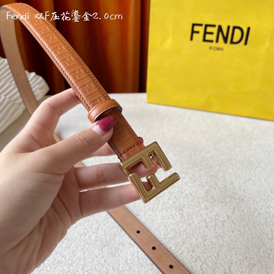 Fendi 최신 시즌 로고 FF 조절 고리 슬림 벨트 폭 2.0cm 순동 골드 마감 메탈 버클 오리지널 이태리 송아지 가죽 버클 링 내부에는 더블FF 이니셜이 내장