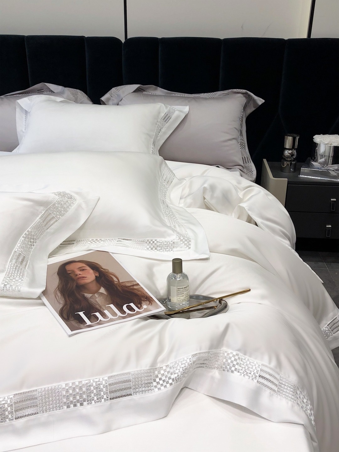 Her*mes 텐셀 펀칭 패치워크 80수 레이셀 텐셀로 밀착된 원단 흡습성, 실키한 부드러움, 펀칭 모티브 공법으로 가볍고 스타일리쉬 사이즈: 킹 220*240cm / 퀸 200*230cm