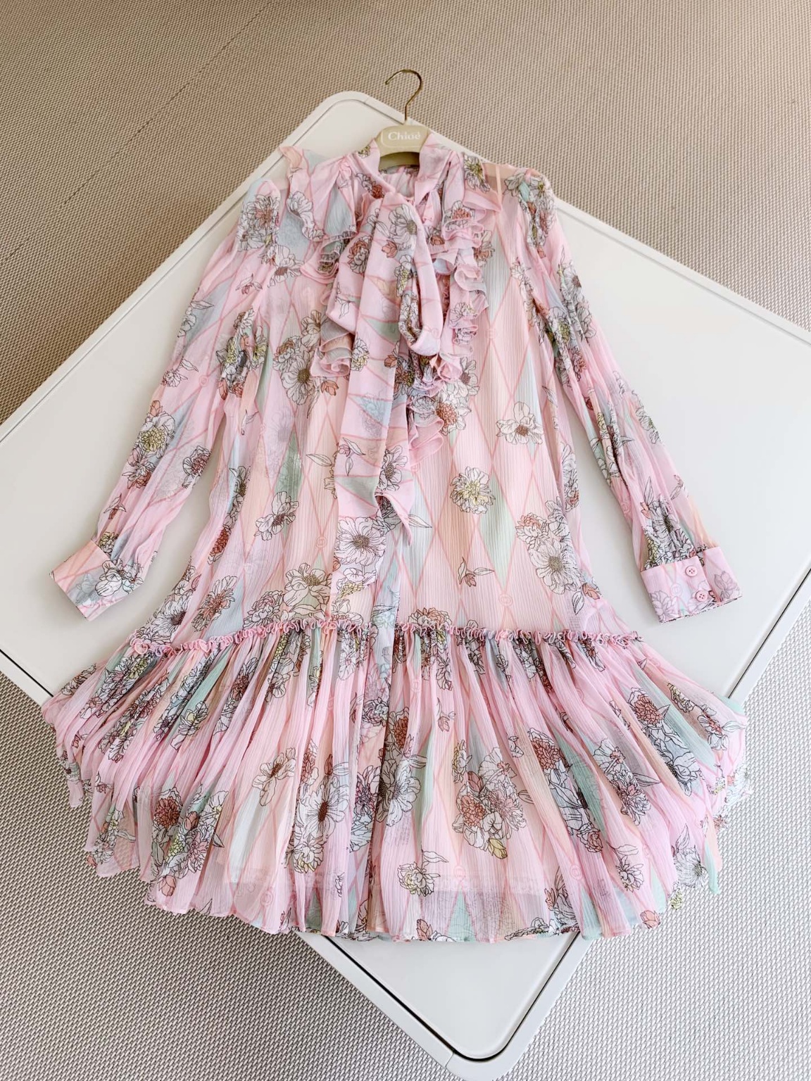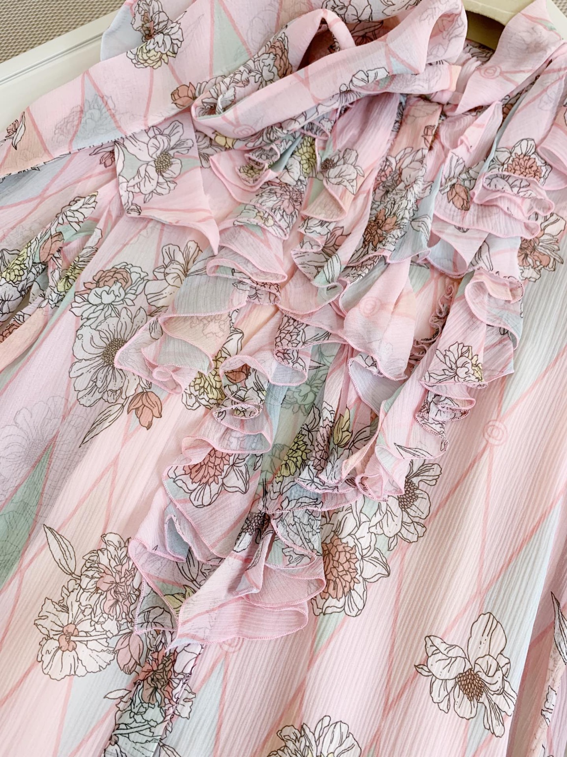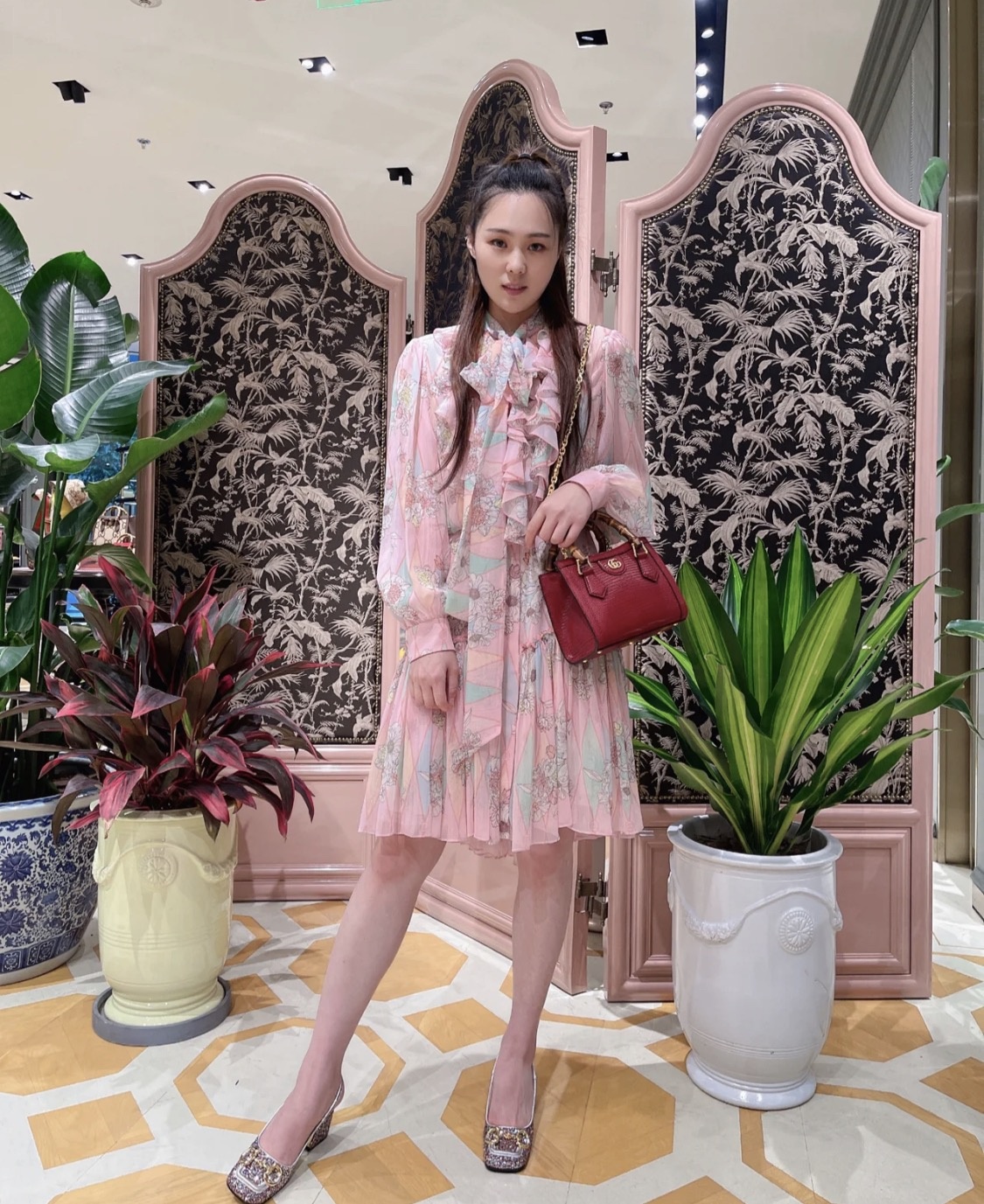 GUCC* 23 초봄 신상 핑크 실크 원피스 정직 YB 실크 실크 원단 레이어드 디자인 네크라인 프렌치 리본 로맨틱 처리 오버사이즈 허리라인 오버사이즈 스커트 자락 날렵하게 흘러내리며 벚꽃 꽃가루 톤의 상체가 매치 세련되고 투피스 안쪽에 나시 원피스 배송 최초 최고 버전 발매