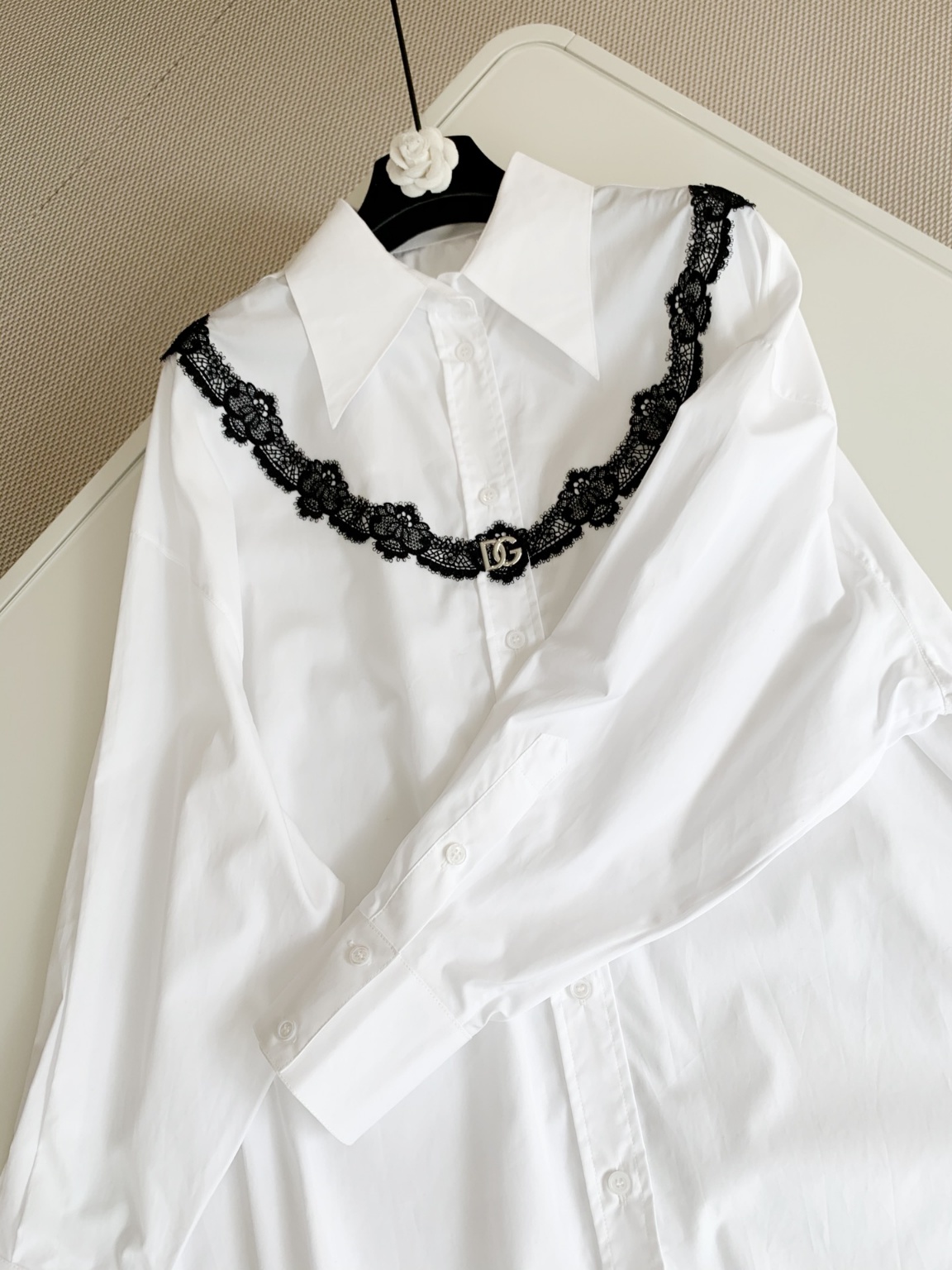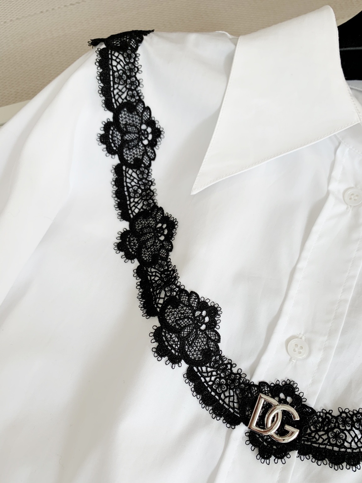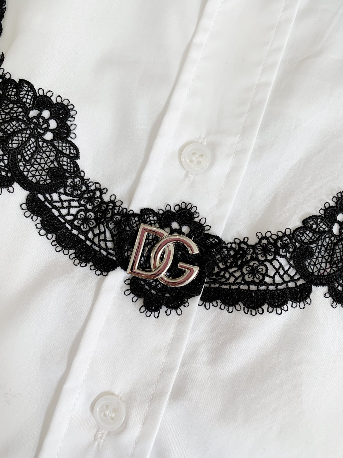 D&G 23 봄여름 배색 화이트 셔츠 새로운 DNA 테마를 만들어 브랜드 스타일을 답습 새로운 스타일의 옷장 컨셉과 데일리 우아한 스타일을 연출 긴팔 셔츠의 핏이 화려하고 시크 최고판 발매