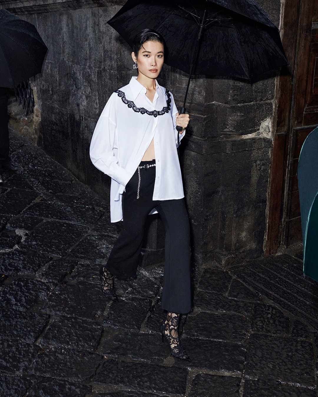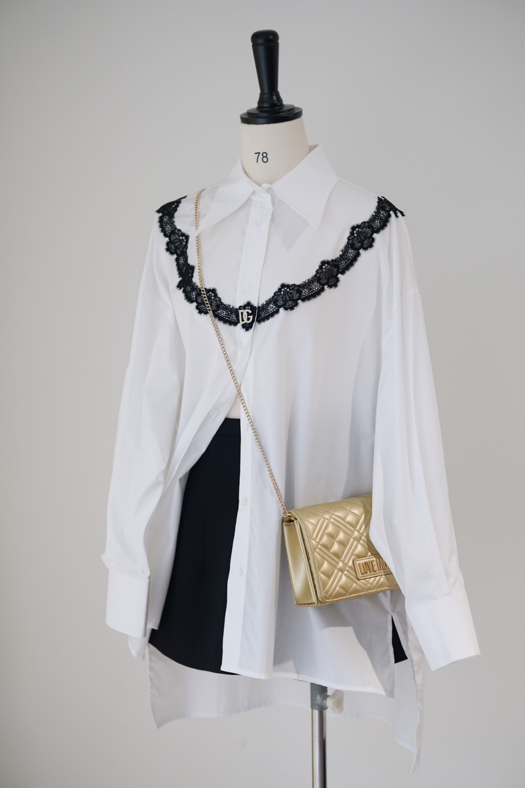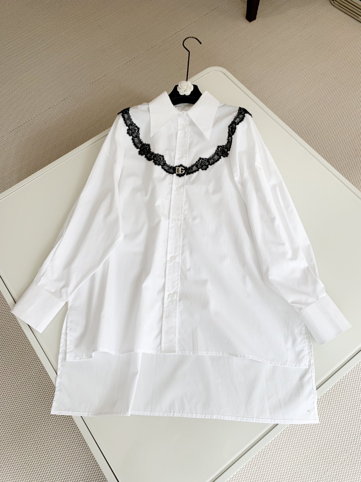 D&G 23 봄여름 배색 화이트 셔츠 새로운 DNA 테마를 만들어 브랜드 스타일을 답습 새로운 스타일의 옷장 컨셉과 데일리 우아한 스타일을 연출 긴팔 셔츠의 핏이 화려하고 시크 최고판 발매