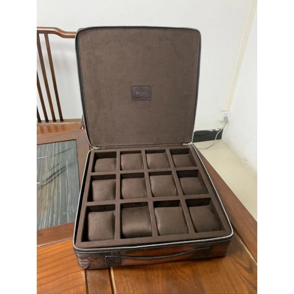 Berluti⚡Scritto 12개입 시계 케이스 베네지아 가죽, 러브레터 조각, 면안감, 천연고법 핸드메이드 컬러링 외부 특징: 가죽 손잡이 하나, 지퍼 클로저 하나, 가죽 손잡이 두 개 내부 특징: 12개의 넓은 칸막이, 1개의 Berluti가 있는 로고 사이즈 : 높이 32-가로 32-두께 8cm