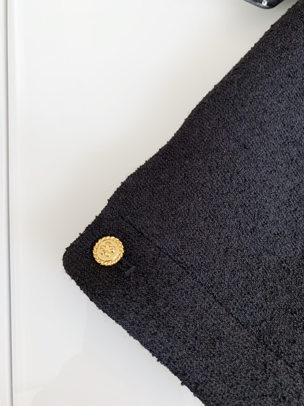 CHANE* 앤티크 골드 버클 입체 블랙 코트 맞춤 수입 네잎 클로버 원단 레이어드, 안감 올 실크 일본에서 수입한 YB, 세로 네잎 클로버 골드 버클 포인트 체인 세련된 실루엣 디테일로 유명 심미 그 자체가 시대를 초월하여 언제나 트렌디