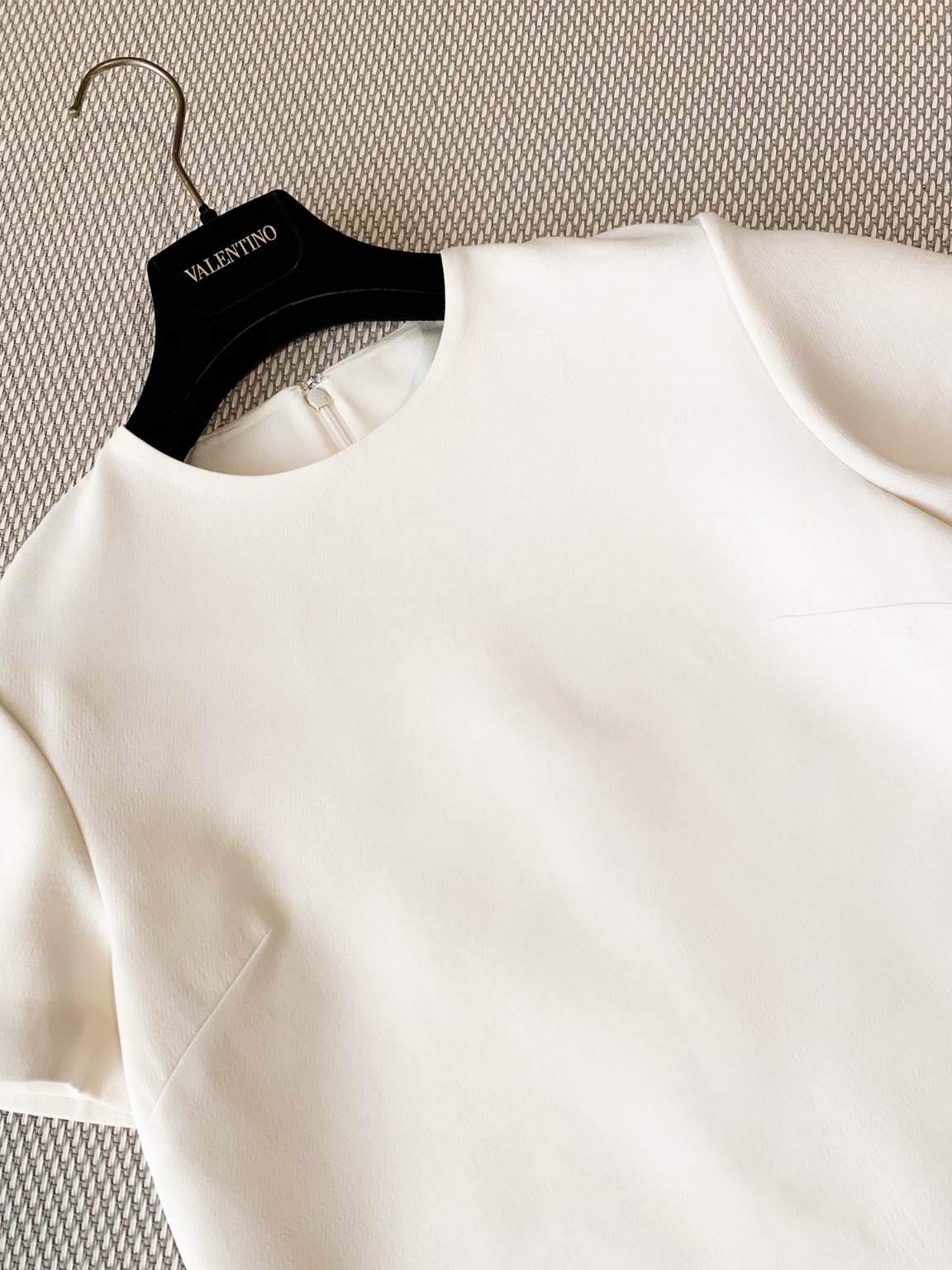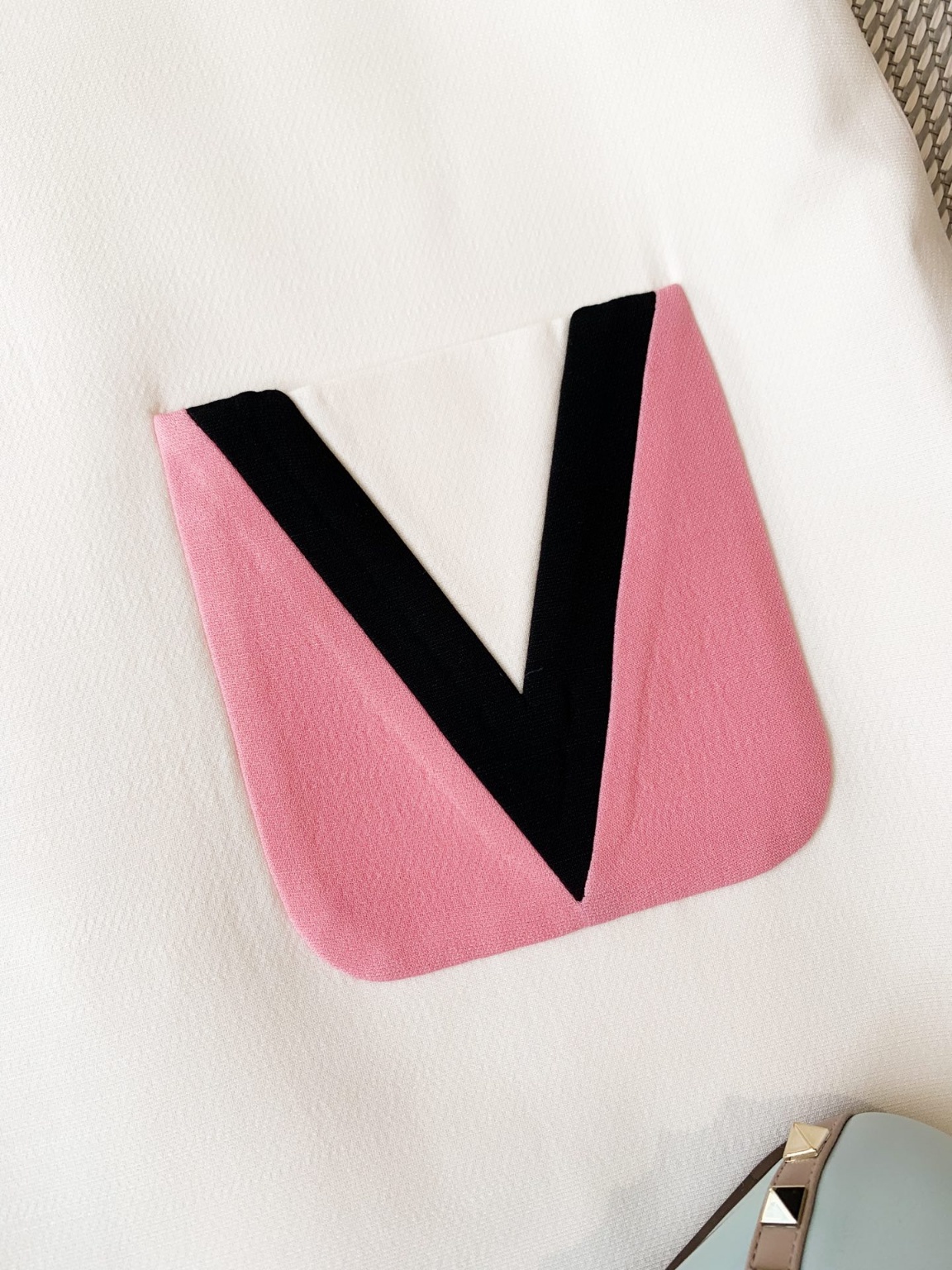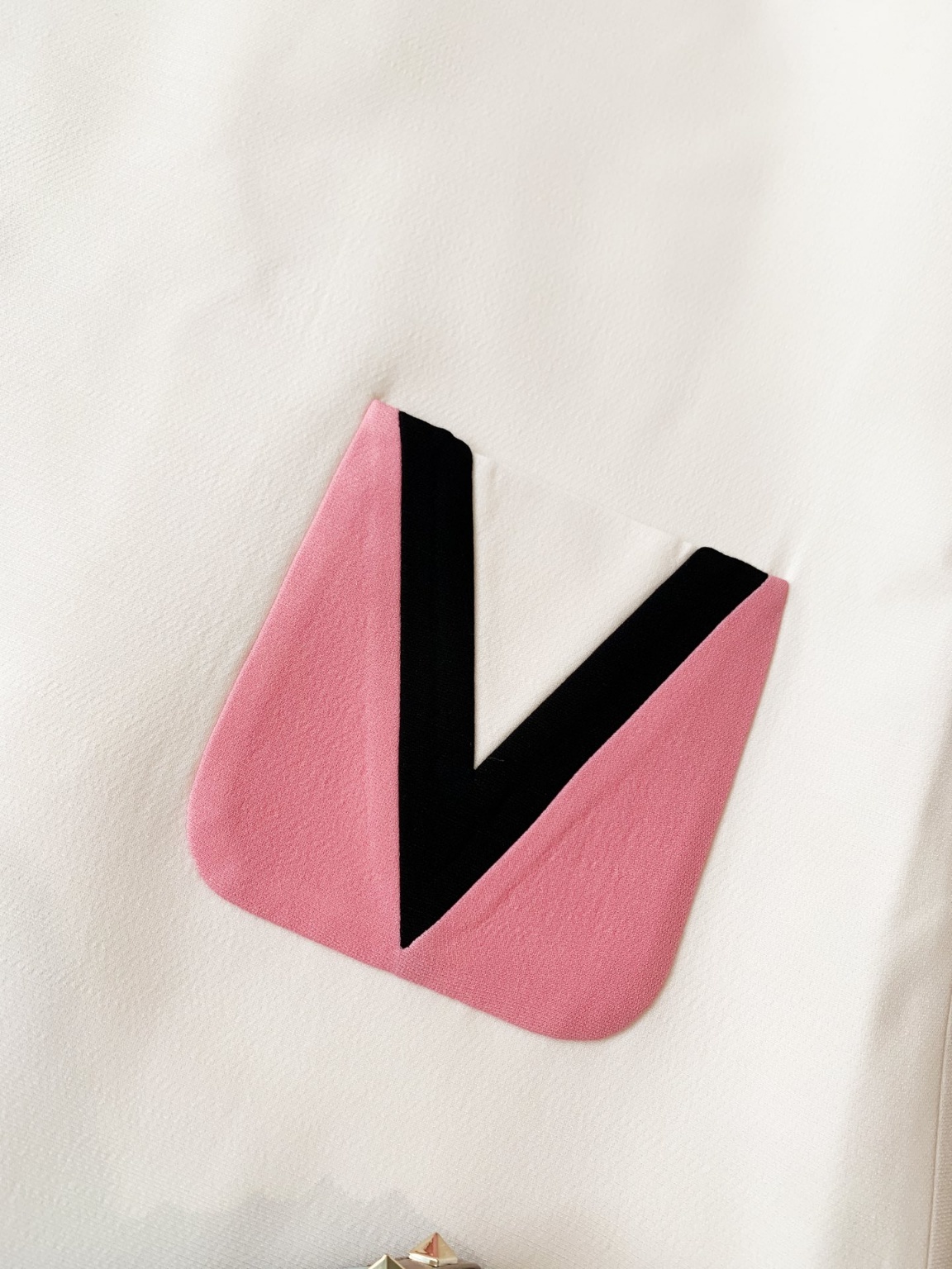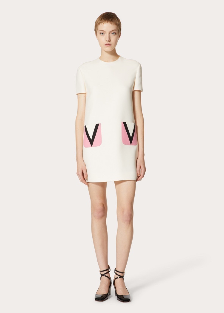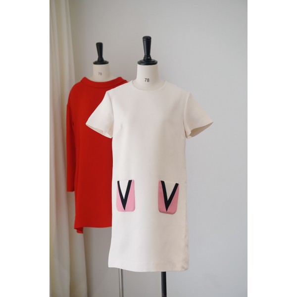 VALENTIN* 23 봄여름 실크 퍼 배색 원피스 YB 수입 헤비 음미스 울 소재 입체적인 양면 핑크 컬러의 V 레터링 포켓 내피 실크 상체가 고급스럽고 부드러우며 여성스러운 매력을 한껏 표현