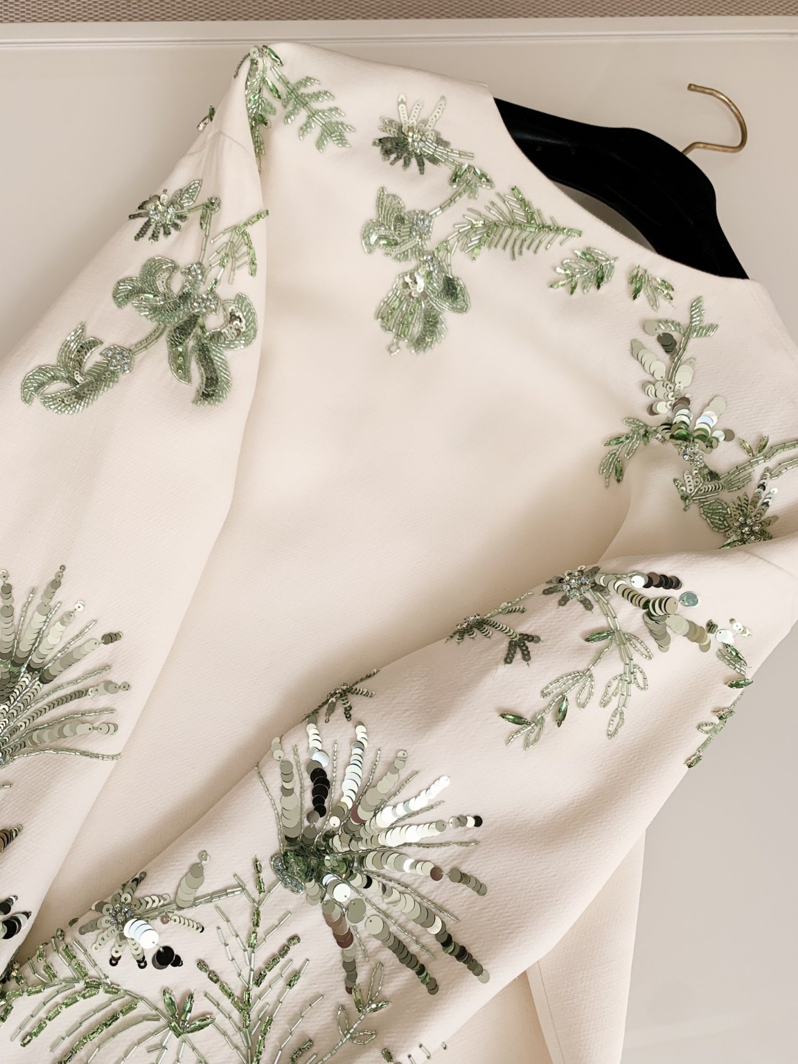VALENTIN* 23 봄여름 자수 고정 원피스 청순한 초록빛이 가득한 컬렉션 테마 입재된 중량감 있는 실크 퍼 위치 결정 징구 자수가 화려하게 세팅 발랄한 매력과 순결함이 넘치는 순수한 모습 생동감 넘치는 이미지로 젊음을 선사하는 베스트 에디션