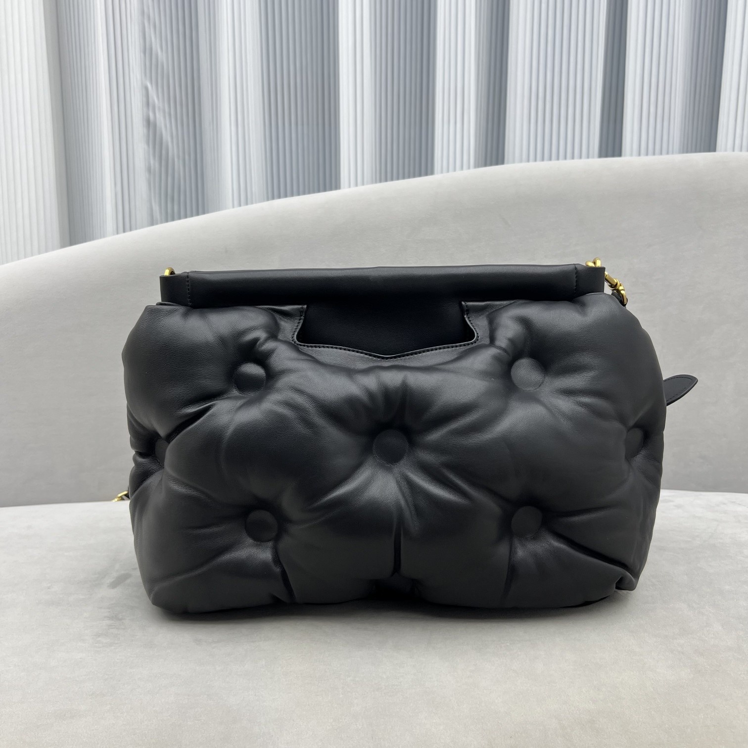 메종마르지엘* 글램 슬램백 양처럼 안고 싶고 베고 싶은 가방 아기 양가죽 가죽이 너무 부드러워서 만지면 촉감이 편안 사이즈 : 46 34 12.5cm