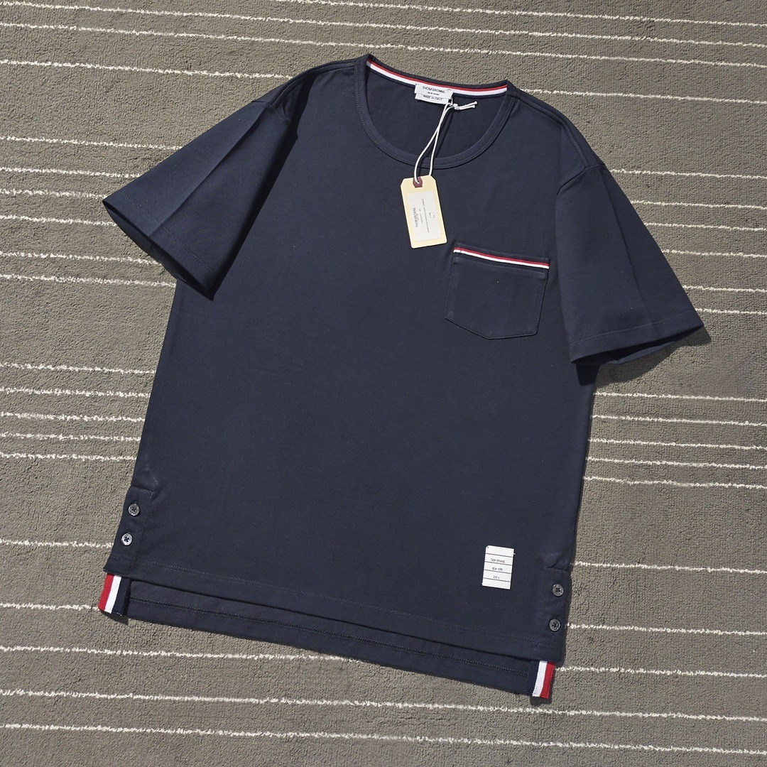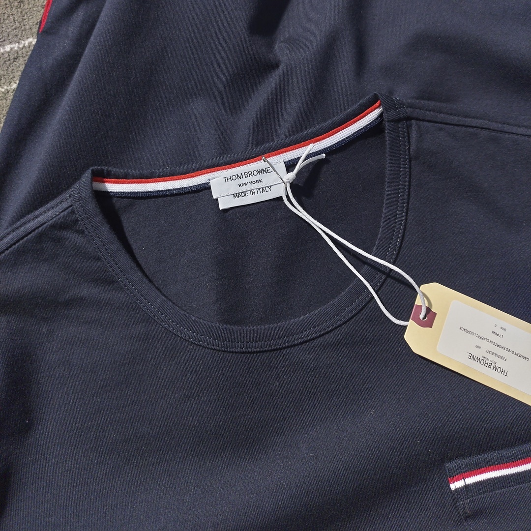 톰브라운 커플 포켓컬러 스트라이프 티셔츠 오리지널 커스텀 40수 이중 가닥 피마 면사 정색 정염 일선 파운드리 선정 오리지널 커스텀 일본 심해 개더버튼 정직 삼색테이프 맞춤 워셔 마킹 메인 마크