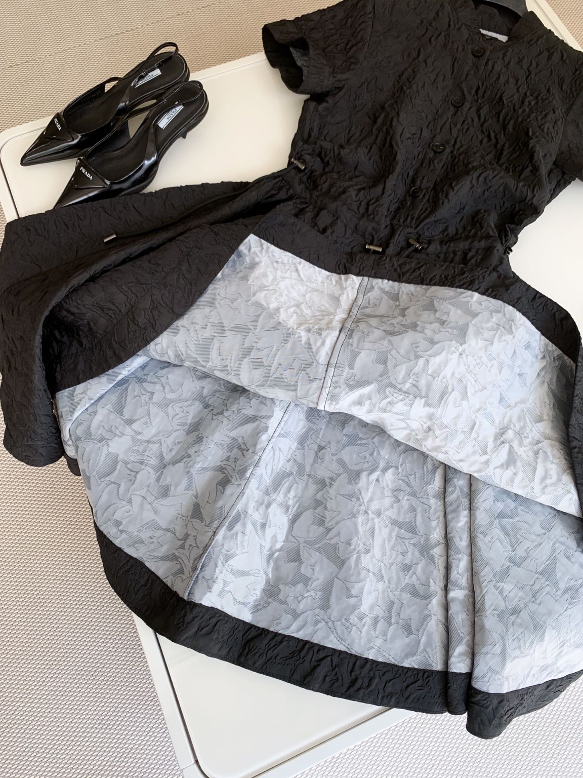 DIO* 23 봄여름 벌룬 면 스탠딩 원피스 실루엣 A컷팅 블랙 무광 시어서커 원단으로 정성스럽게 제작 플레어 실루엣을 조절할 수 있는 스트링 CD 꿀벌 자수로 세련되게 꾸며 캐쥬얼하거나 우아한 스타일링을 완성 최고가 발매