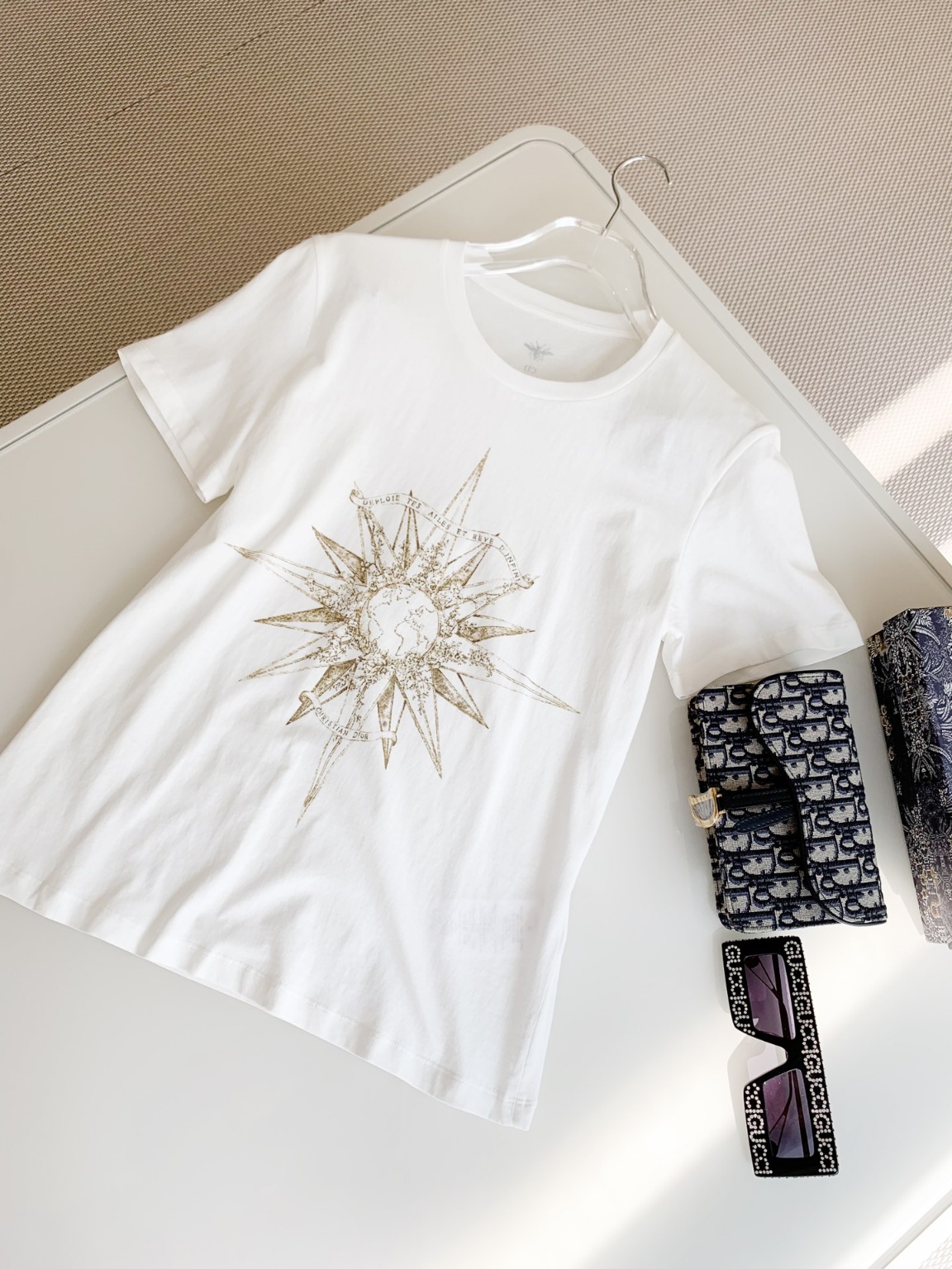 DIO* 23 봄여름 럭키스타프린트T 베이지 코튼과 린넨 혼방 저지 원단으로 정성스럽게 제작 행운의 별과 클래식 로고를 재해석하여 몽환적인 효과 뒷면에는 꿀벌과 CD 로고가 클래식하게 매치 최고 버전으로 발매