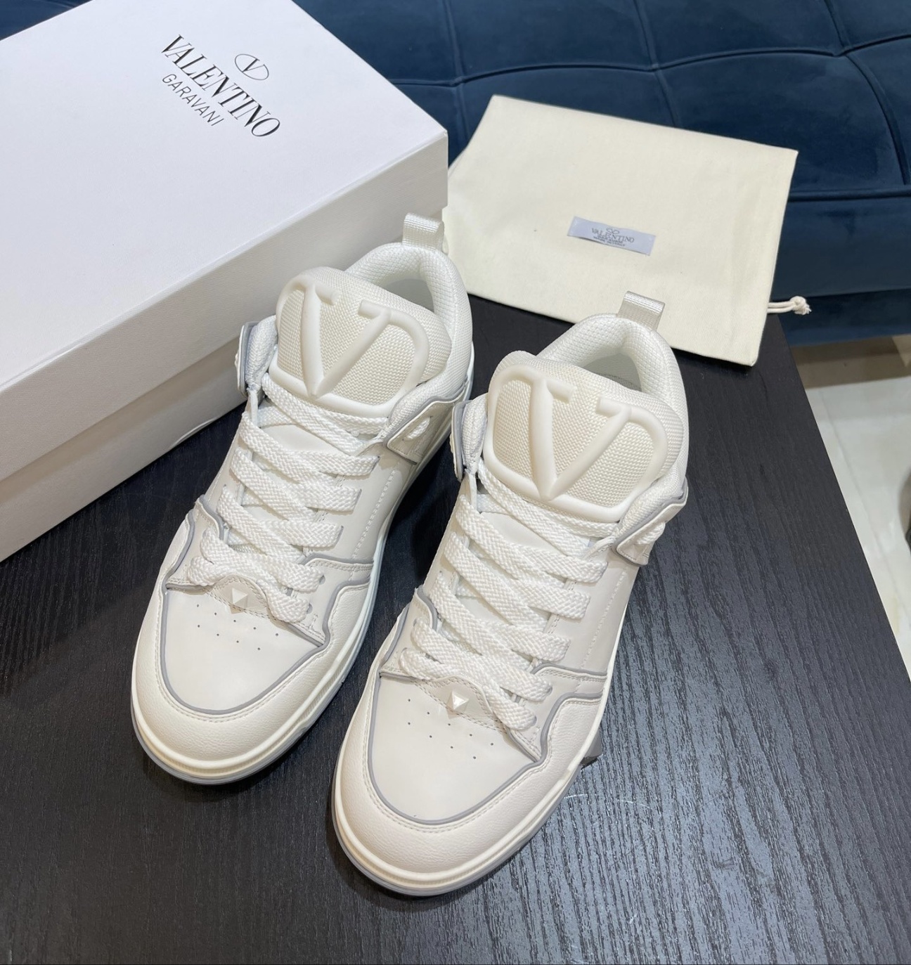 발렌티노 VT OPEN SKATE 송아지 가죽과 패브릭 스니커즈 라이닝 패브릭 슬립온 브이로고 시그니처 러버 디테일 컬러 배색 슈즈 바닥 측면 오버사이즈 스터드 고무창 브이로고 시그니처 패턴 지원
