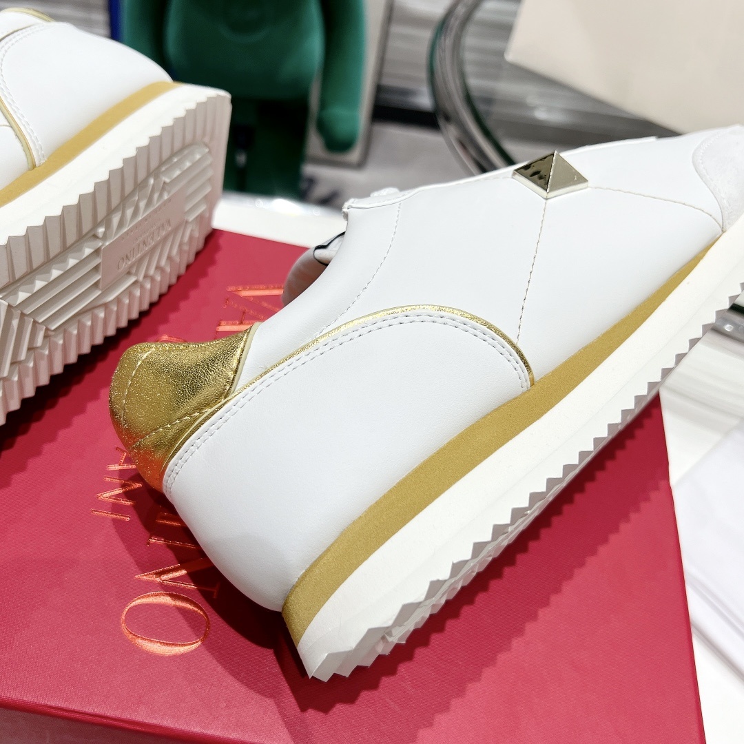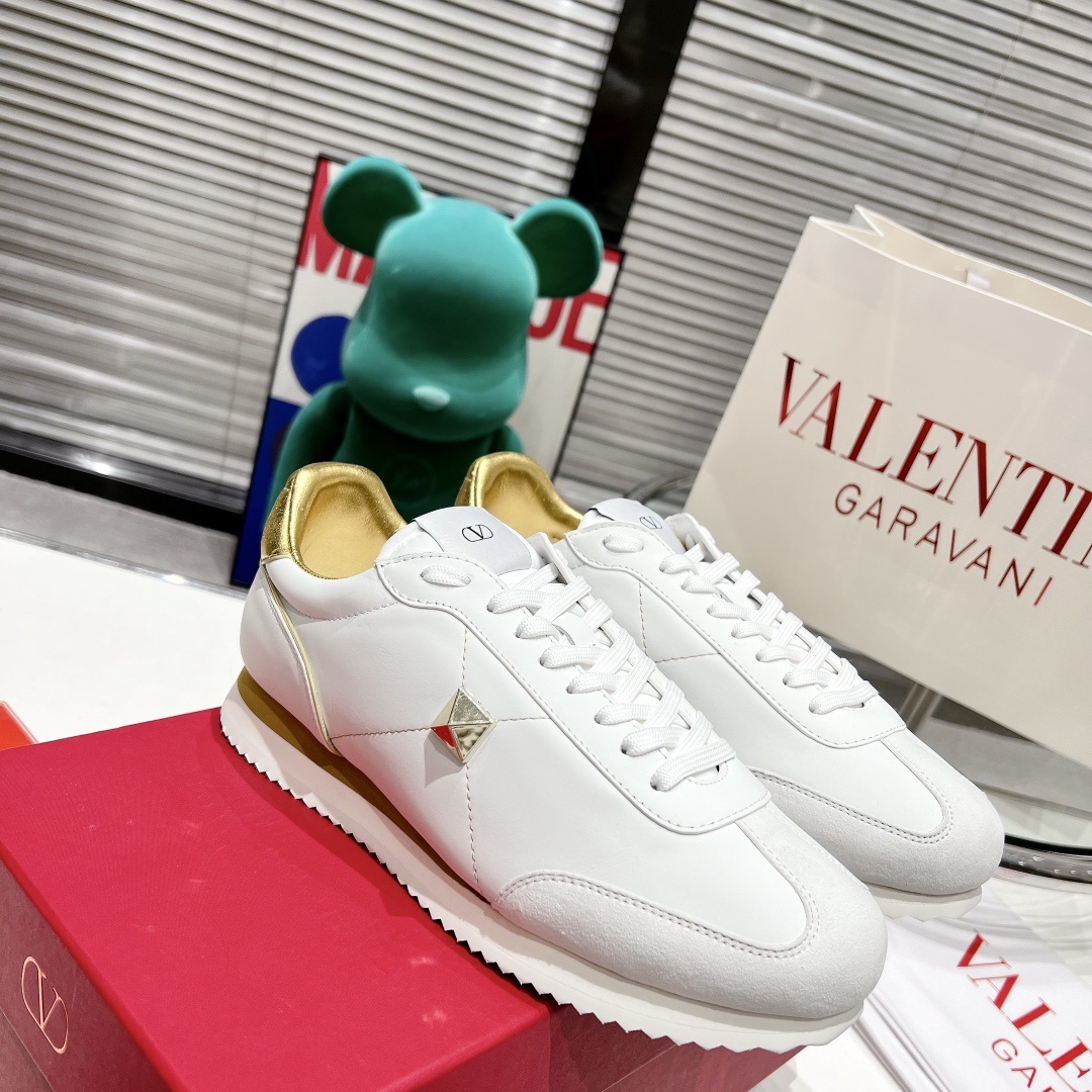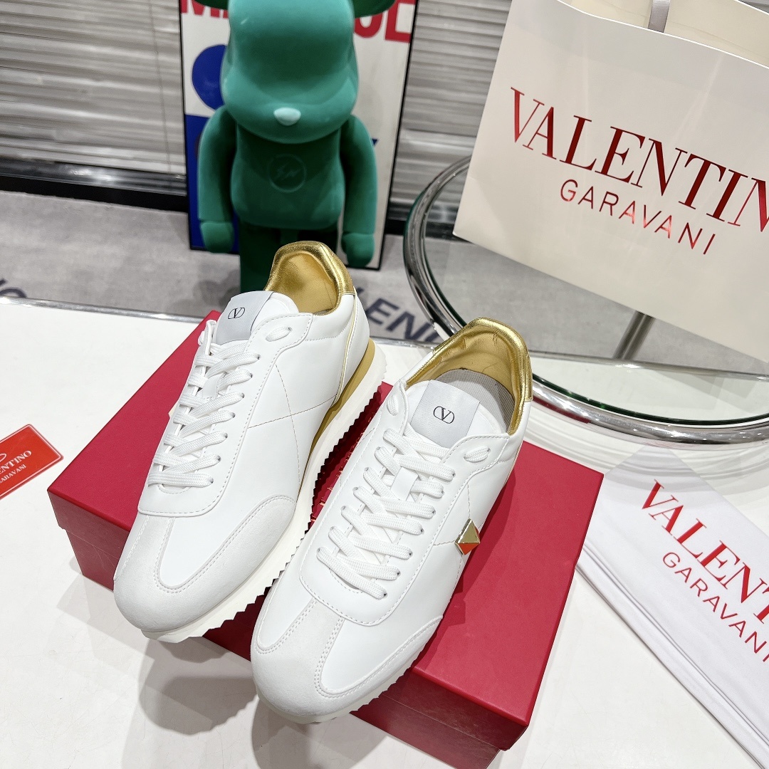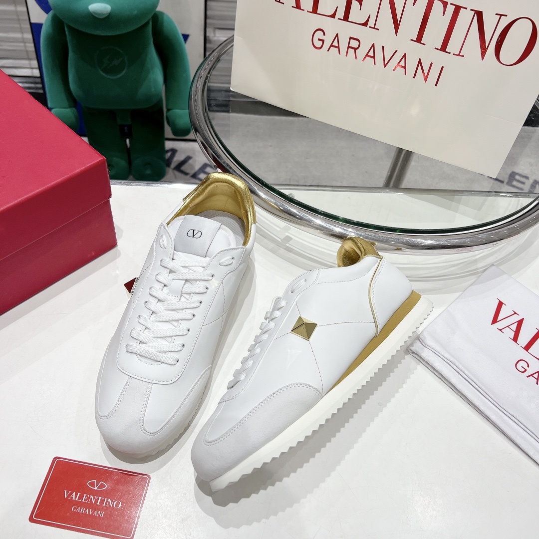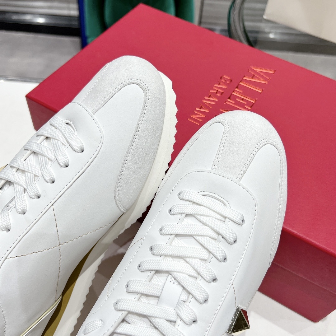 최고급 버전. 발렌티노 가라바니 스터드 아라운드 커플 로우컷 송아지 가죽과 양가죽 운동화 가라바니 스터드 어라운드 송아지 가죽과 양가죽 운동화 무광 마감 오버사이즈 리벳 동색 리벳과 스티치 -고무창