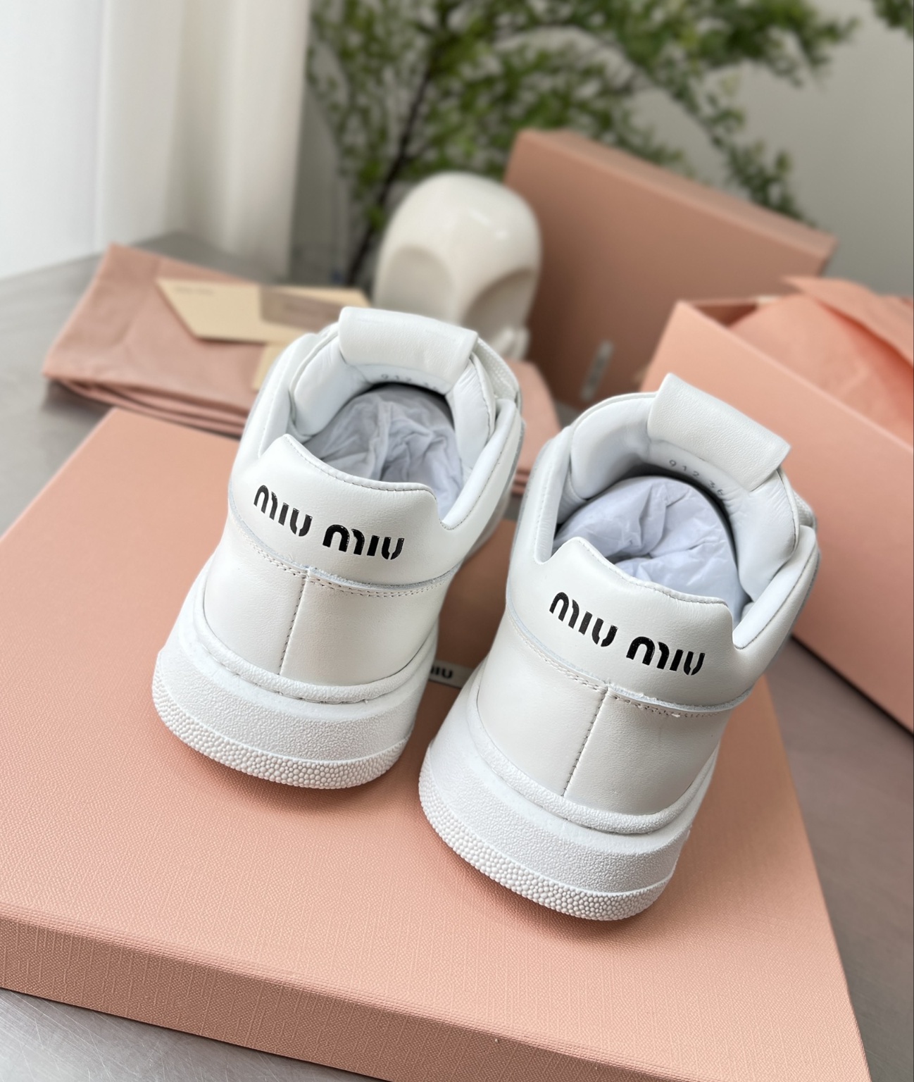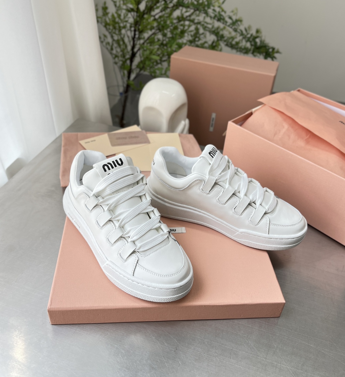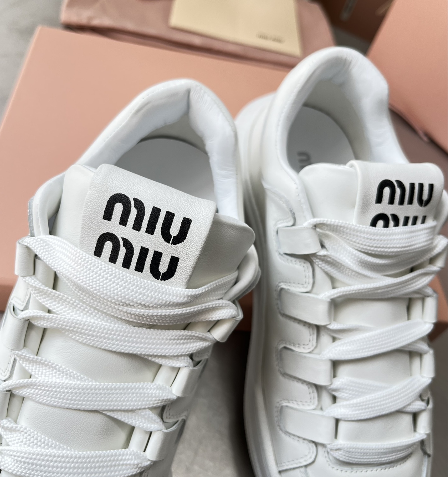미우미우 23ss 봄여름 스퀘어 통굽 스니커즈 앞면 송아지 가죽 속 양가죽 징검다리 소가죽 오리지널 발포 베이스