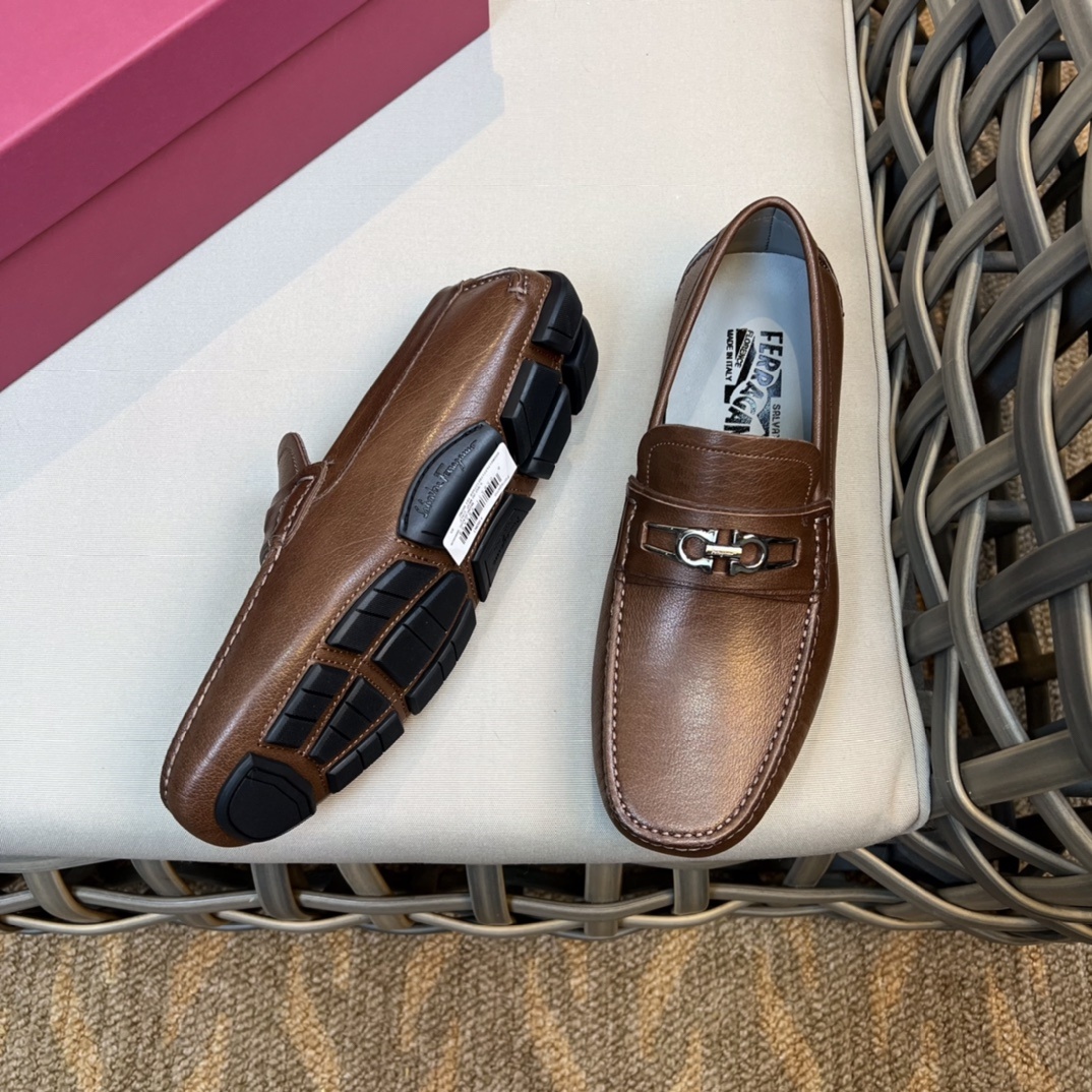 Ferragam* 신상 로퍼 프리미엄 버전 왁스칠 송아지 가죽 전통 핸드메이드 소가죽 안감 디테일 브랜드 시그니처 메탈 버클 편안하고 고급스러운 착용감