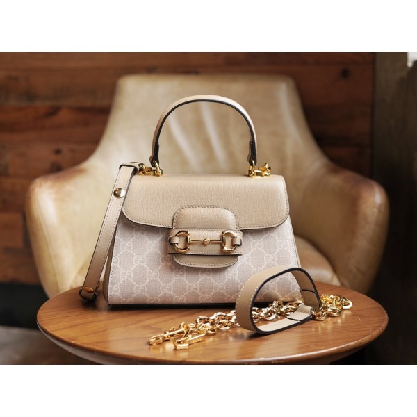 Horsebit 1955 컬렉션의 토트백 승마 브랜드에서 영감을 받아 더블 링과 롱 스틱의 두 가지 요소로 구성되어 있으며 오늘날까지 브랜드의 아이코닉한 요소 중 하나가 되었습니다 사이즈 : 22*16*10.5cm 모델번호:703848