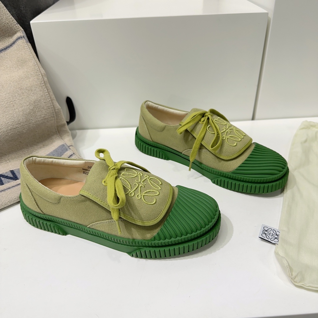로에베 23 봄여름 클래식 자수 빅 플랩 캔버스화 쿠키슈즈 신발 표면은 오리지널 맞춤 수입 고밀도 캔버스 내부 통기성 캔버스, 디딤판 물감 소가죽 오리지널 오픈 고무 성형 베이스 질감 오리지널 일치