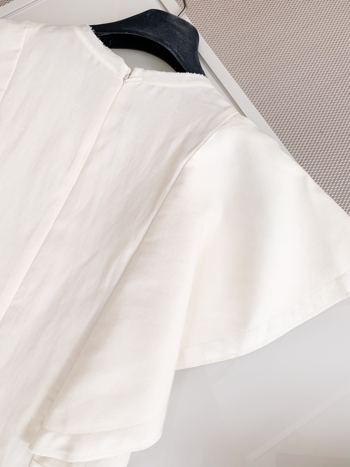 CHLO* 23 봄여름 코튼 마 원피스 세트 정직 YB 입체 면 린넨 원단 스탠딩, 네크라인 입체 셔링 공법 스탠딩 디자인 수술 소매 포인트로 프렌치한 로맨틱함 최고판 발매
