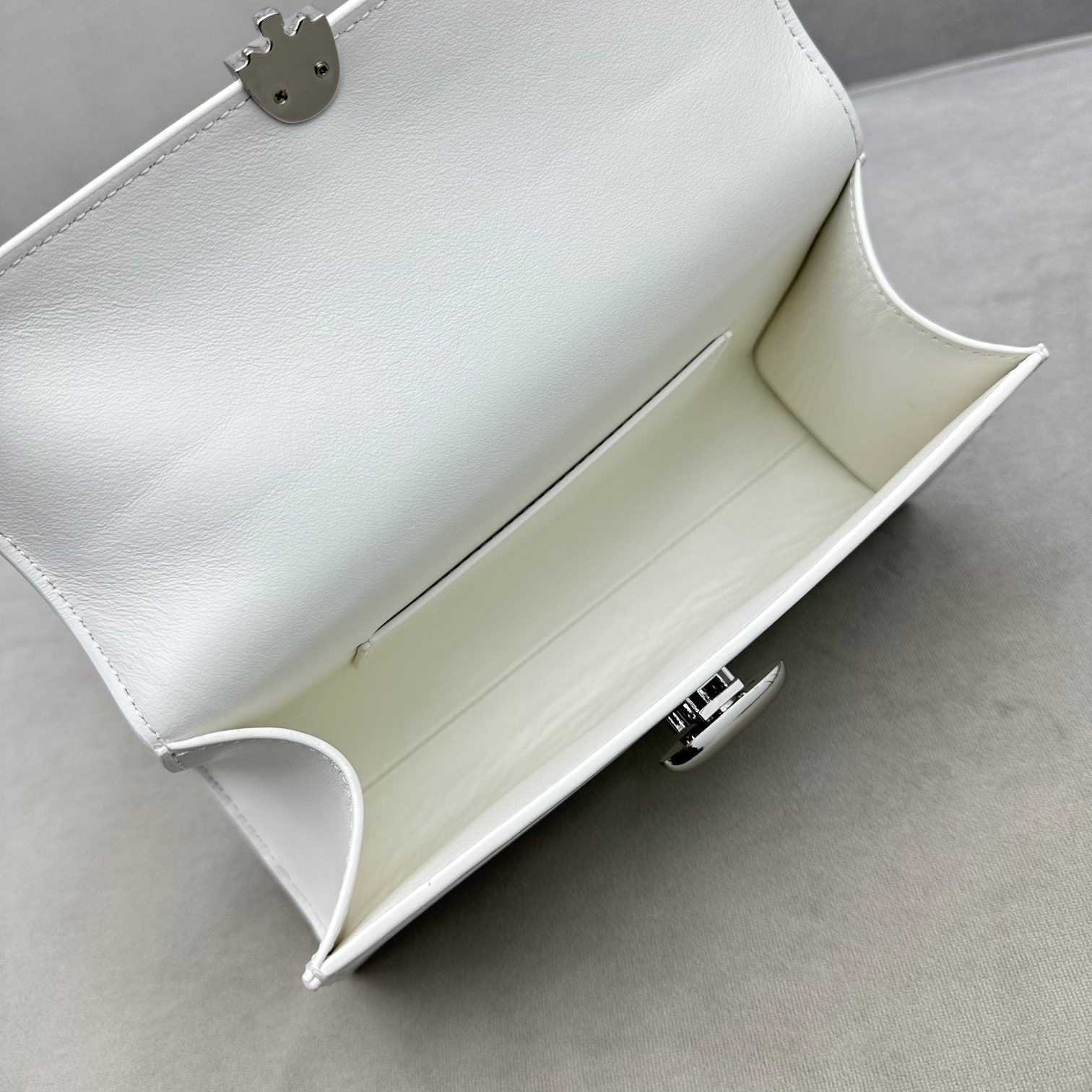 미니멀하고 고급스러운 Savette 더로우 전 디렉터 디자인 브랜드 전피가죽은 고급스러운 질감과 촉감 시그니처 대칭적인 회전 잠금버튼을 제공 안에 파우치 케이스가 들어 있는 사이즈 통근은 물론 일상에서도 활용가능 사이즈 : 22x12x7cm