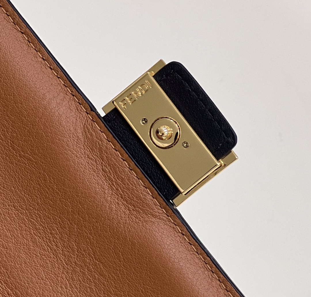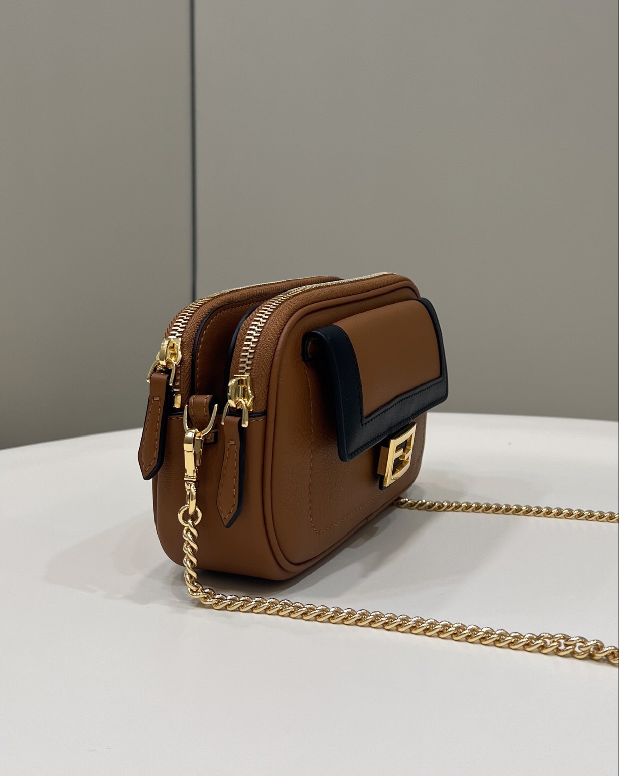 펜디 이지 바게트 블랙과 브라운의 컬러 입체감을 살린 전면에는 시그니처 FF 마그네틱 버클 플립 휴대폰 파우치 칸막이 이중 두칸은 지퍼 여밈 용량이 크고 실용적 size 19×5×11